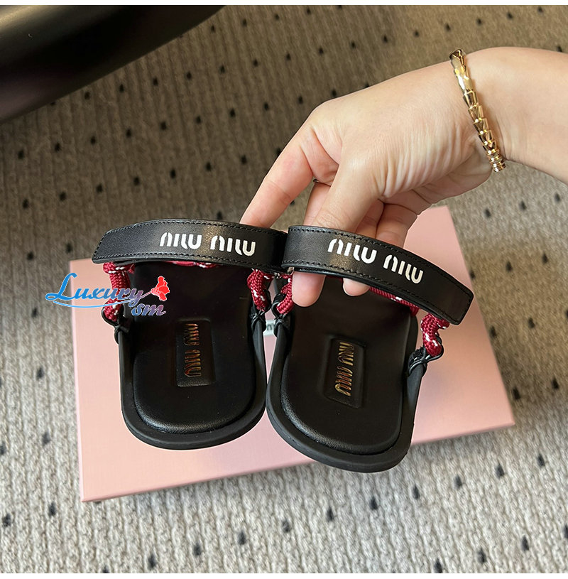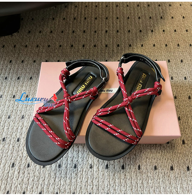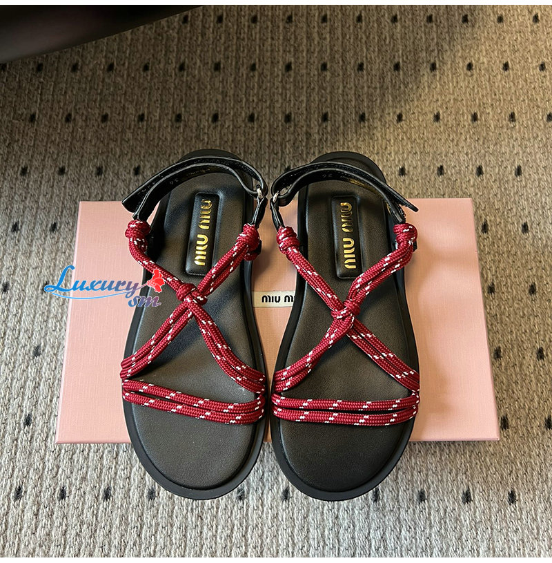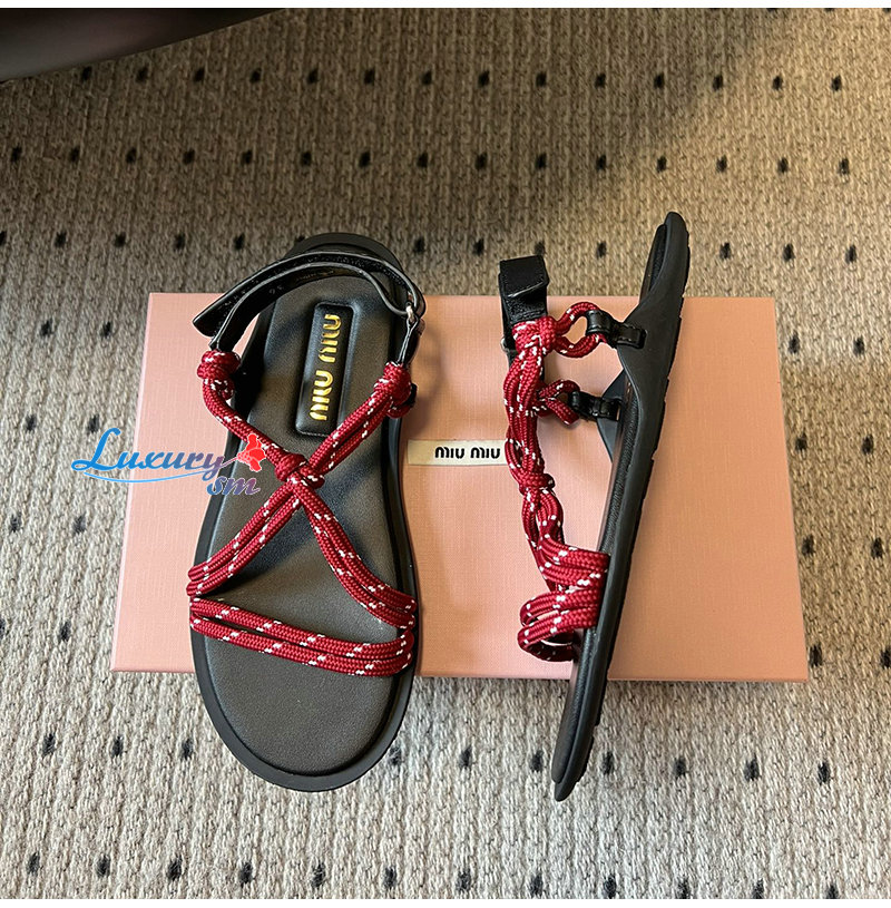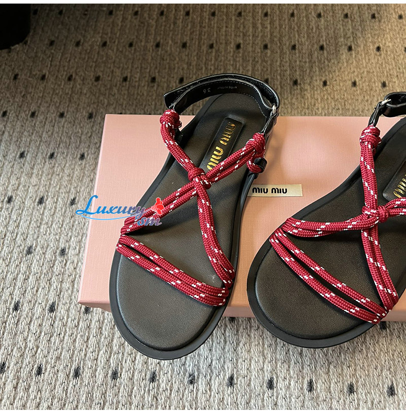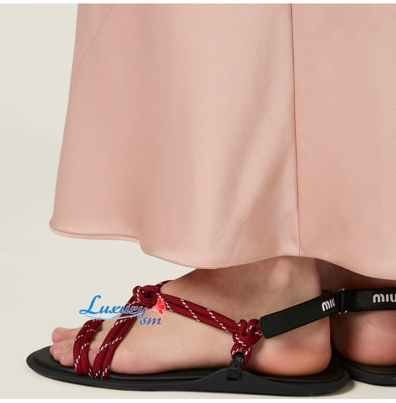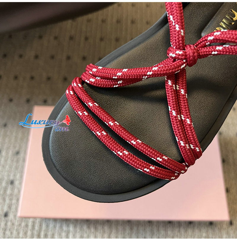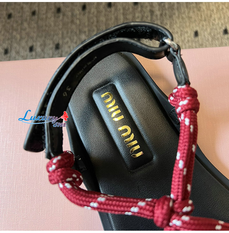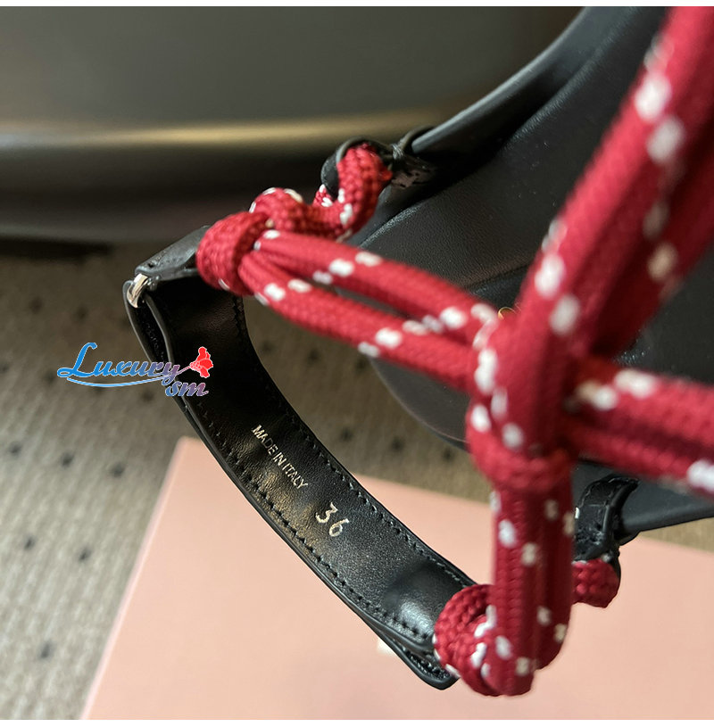 MIUMIU-5X420E 미우미우 레드 Riviere 코드 가죽 샌들 여성용