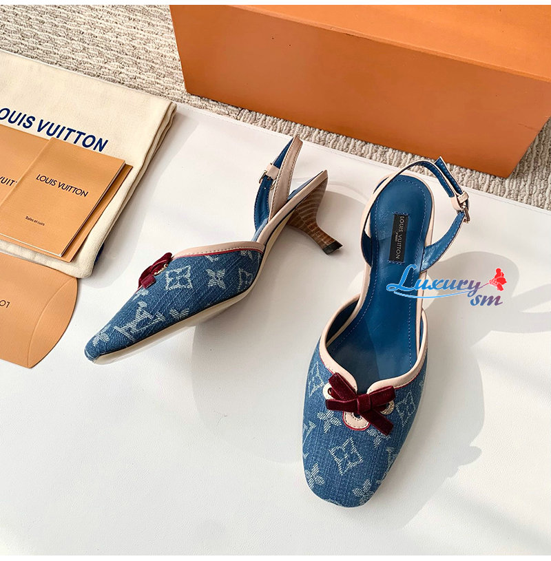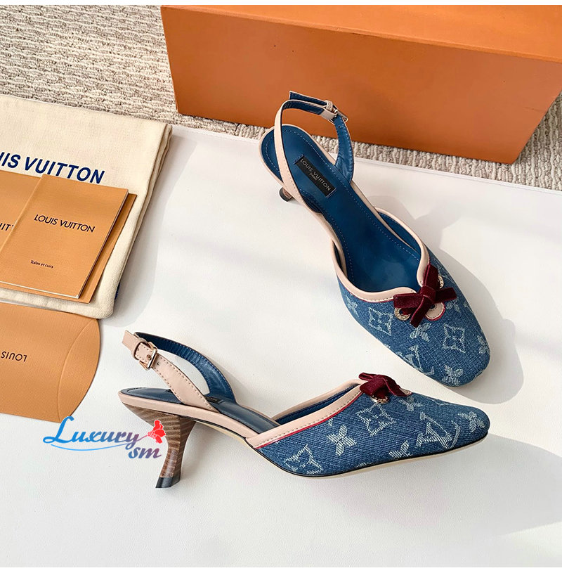 LOUIS VUITTON-04071 루이비통 블루 모노그램 데님 슬링백 펌프스