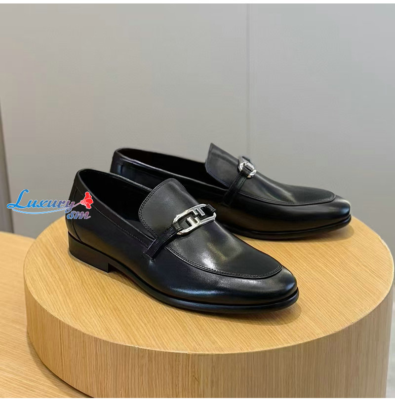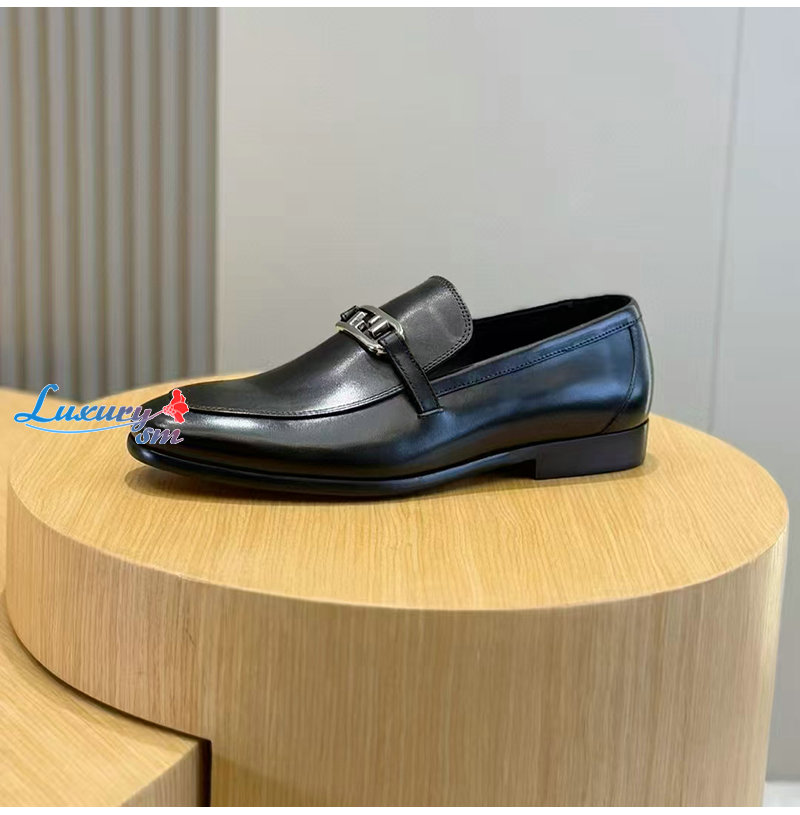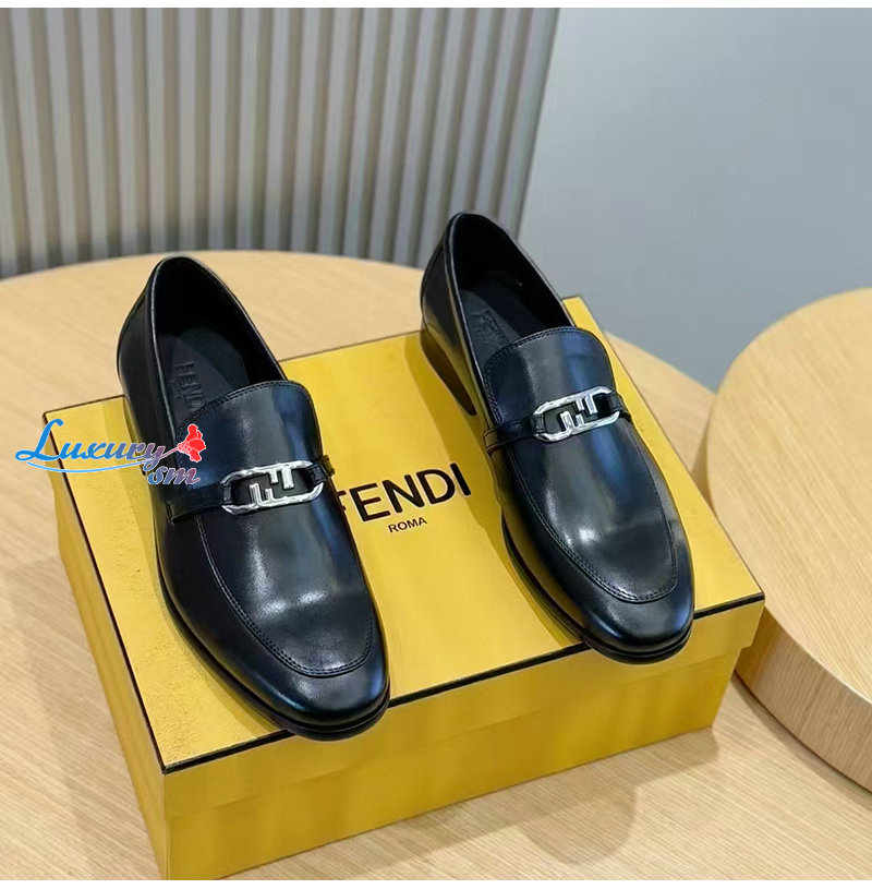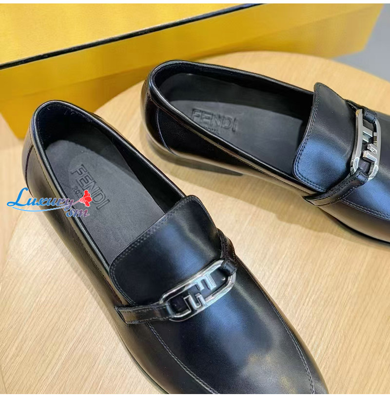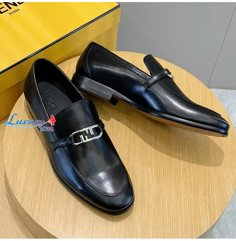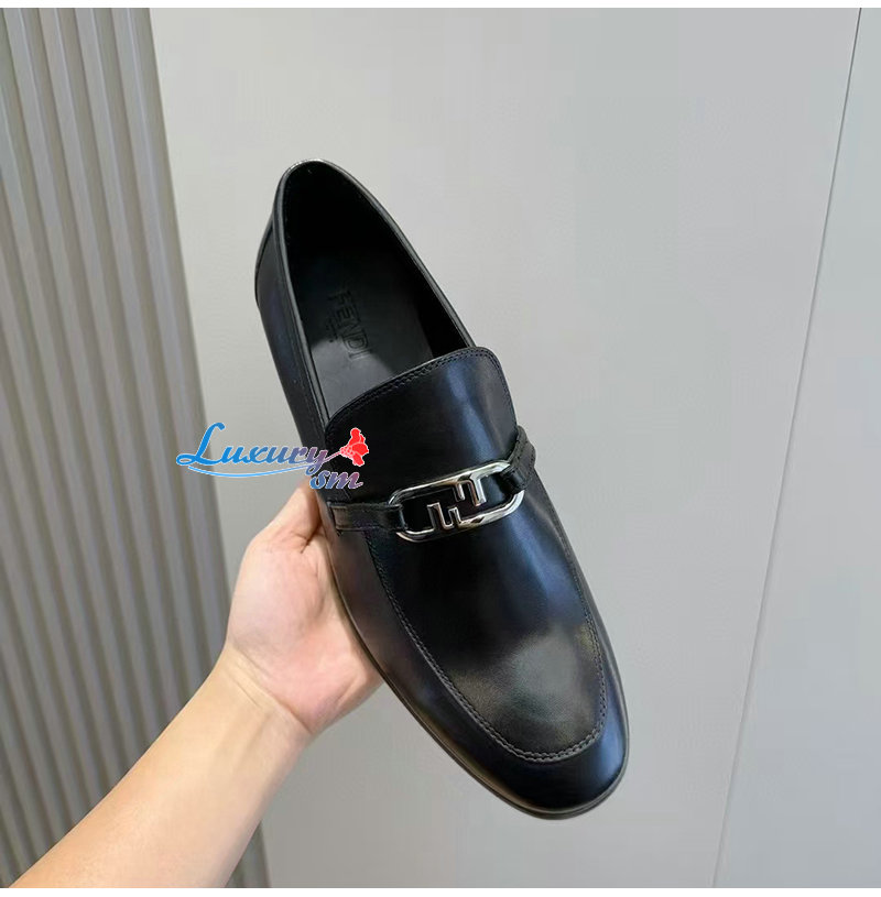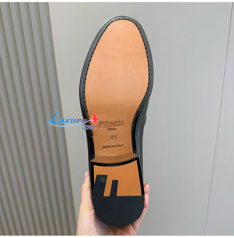 FENDI-7D1680 펜디 블랙 송아지 가죽 오 락 로퍼 남성용