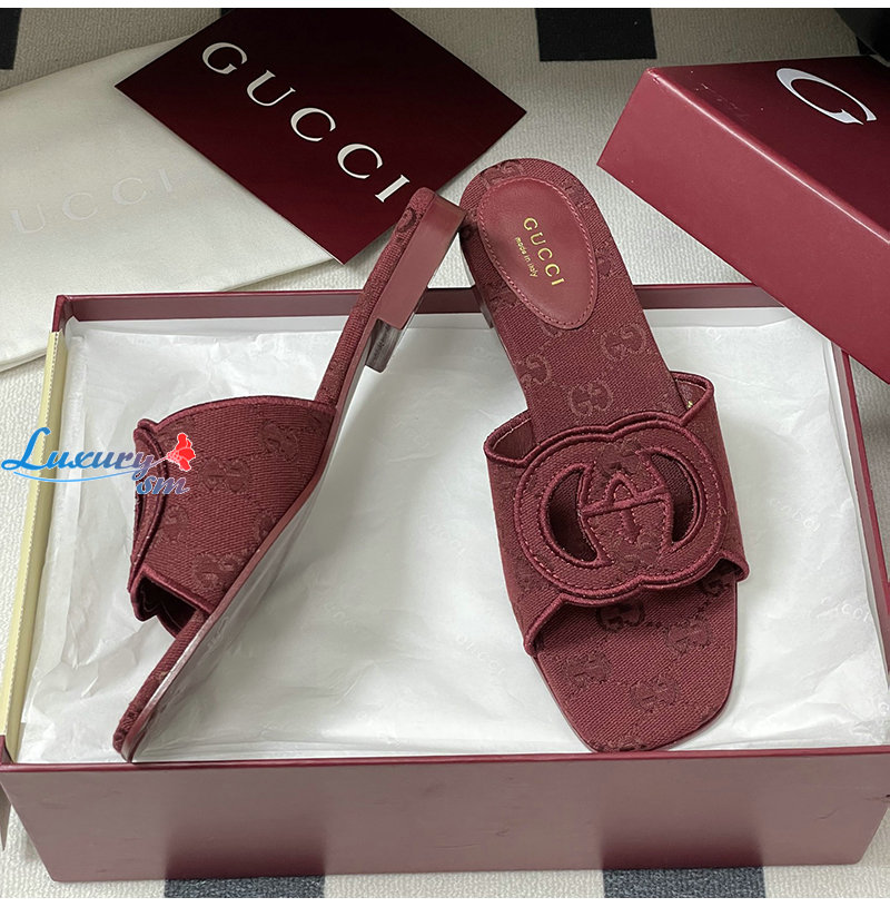 GUCCI-790447 8549 구찌 레드 인터로킹 G 슬라이드 샌들