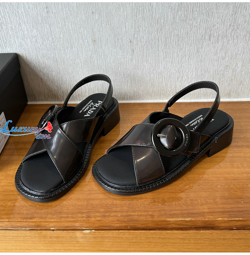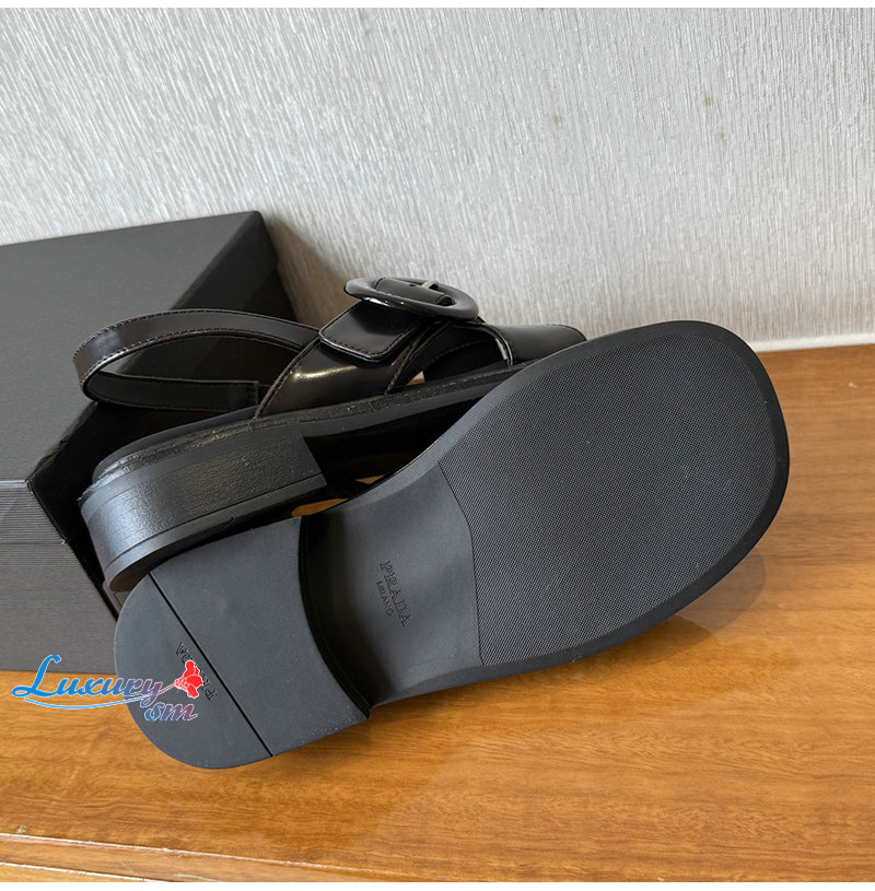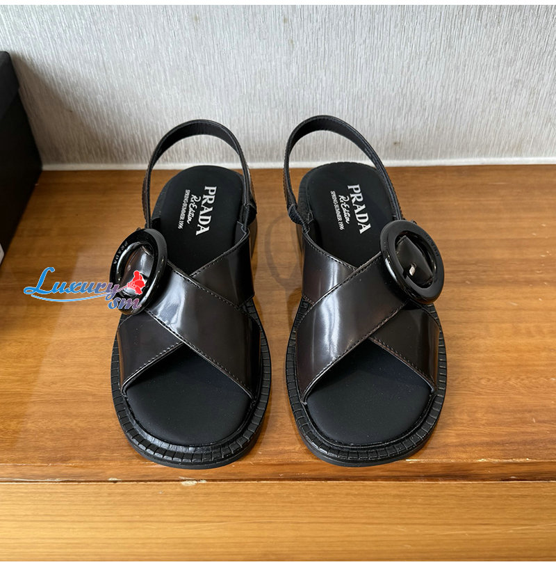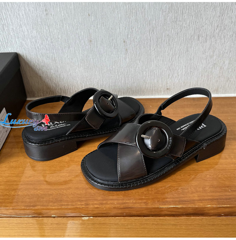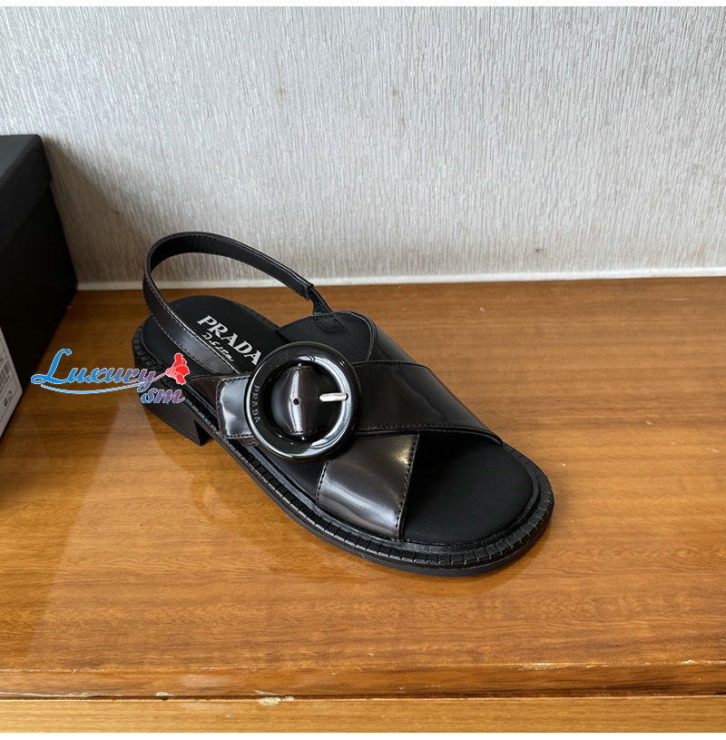 PRADA-1X962N 프라다 시에나 버클 장식 브러쉬드 가죽 샌들 여성용