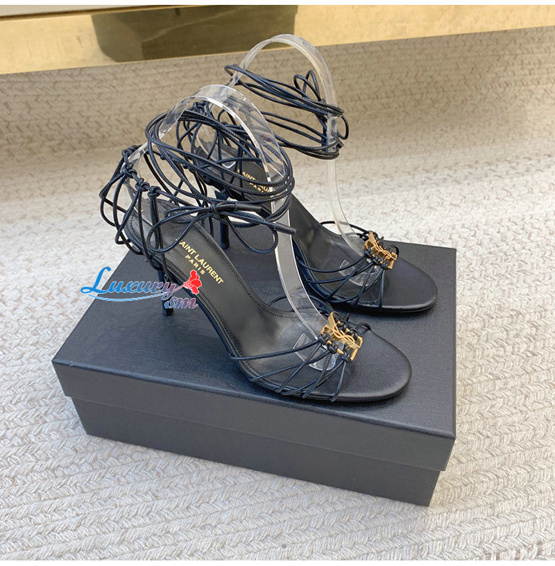 SAINT LAURENT-785706 생 로랑 블랙 램스킨 babylone 샌들