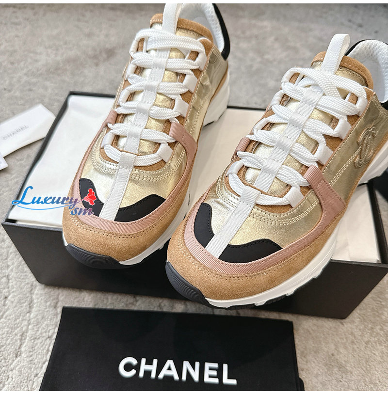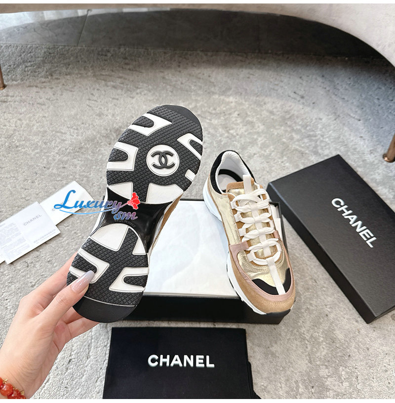 CHANEL-G46609 샤넬 골드 카프스킨 스니커즈 여성용
