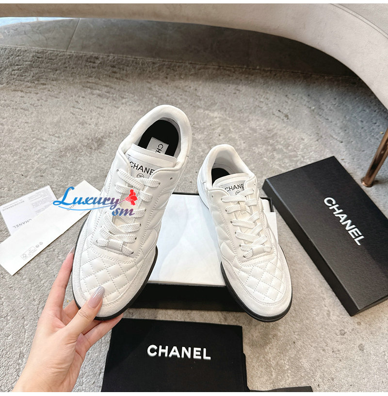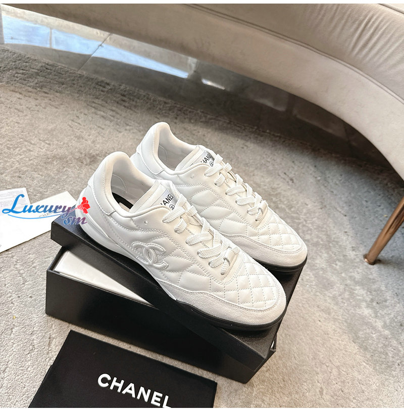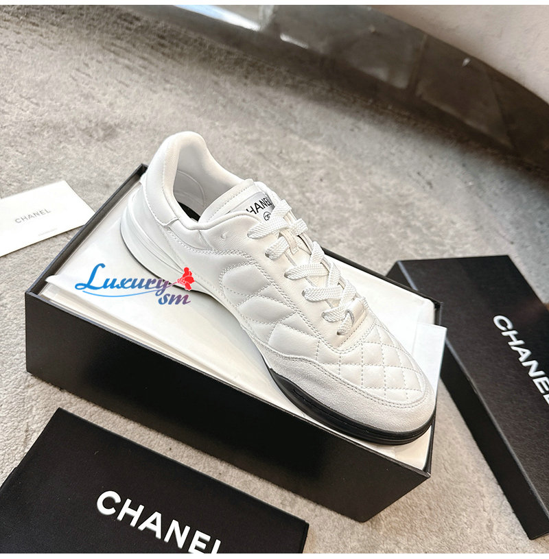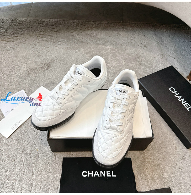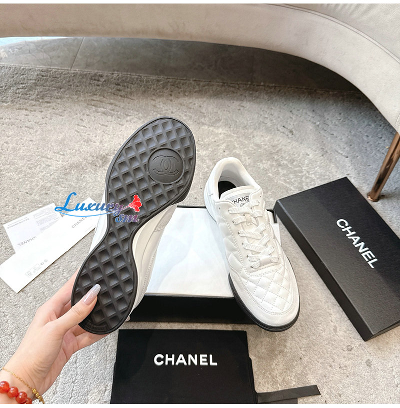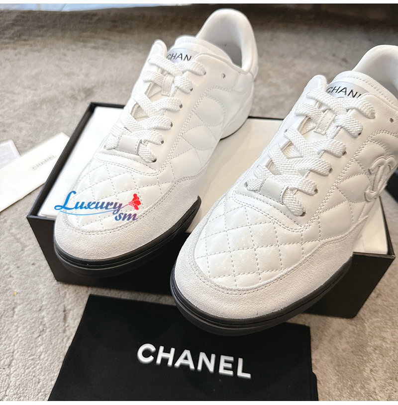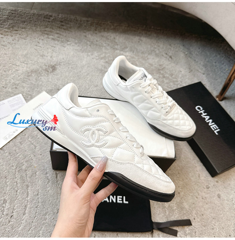 CHANEL-G45839 샤넬 화이트 유광 카프스킨 스니커즈 남여공용