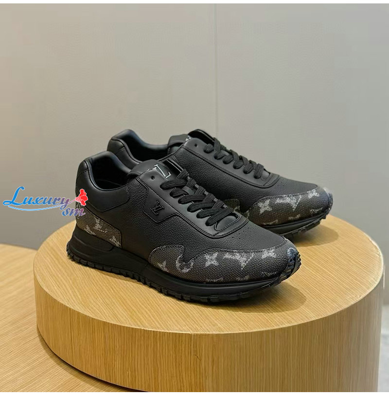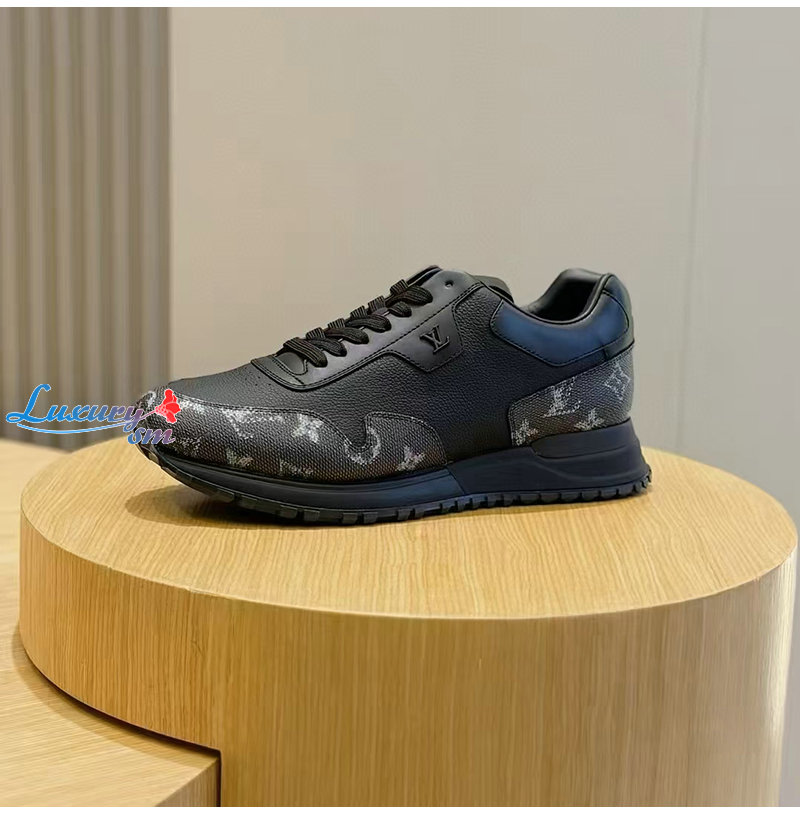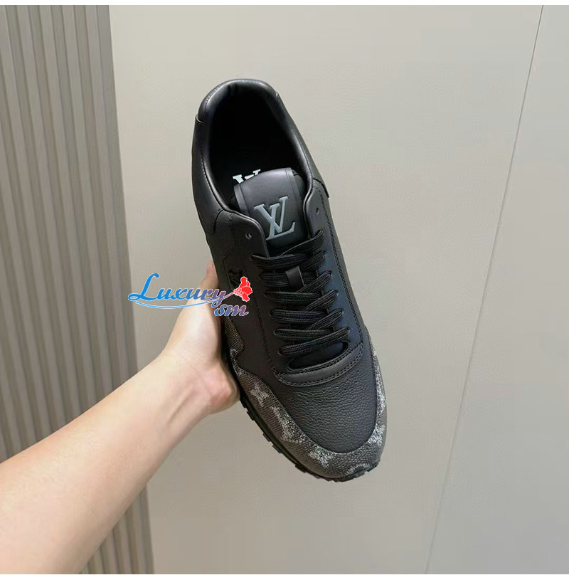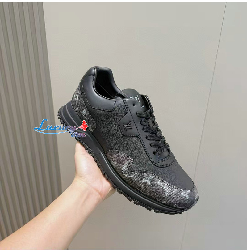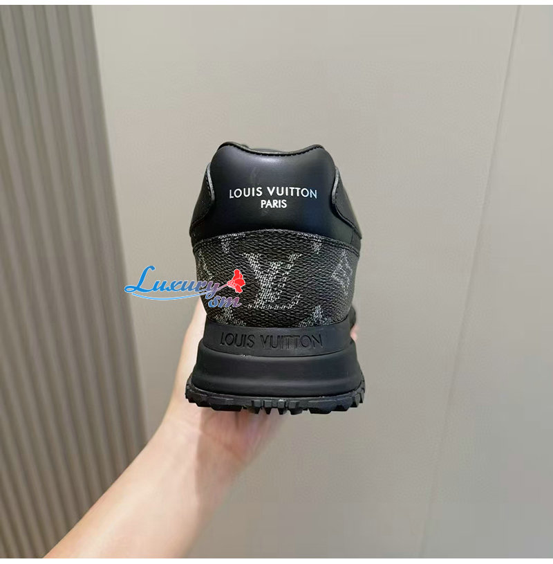 LOUIS VUITTON-1AILES 루이비통 블랙 모노그램 송아지 가죽 런 어웨이 스니커즈 남성용