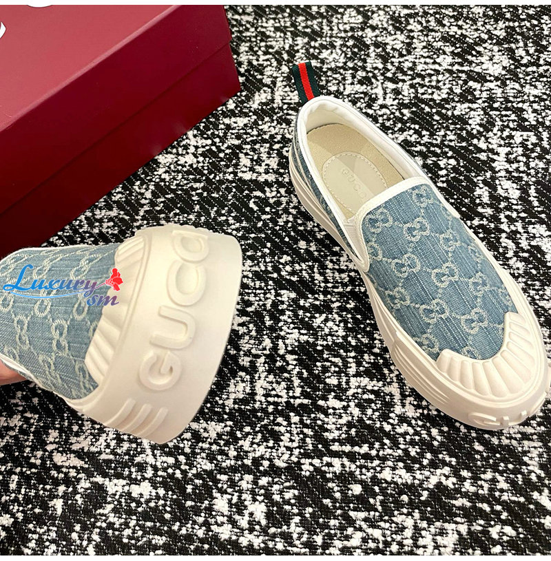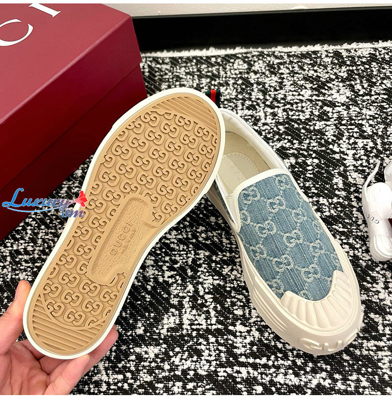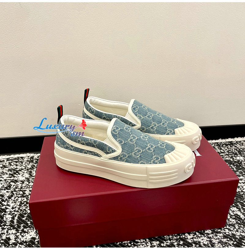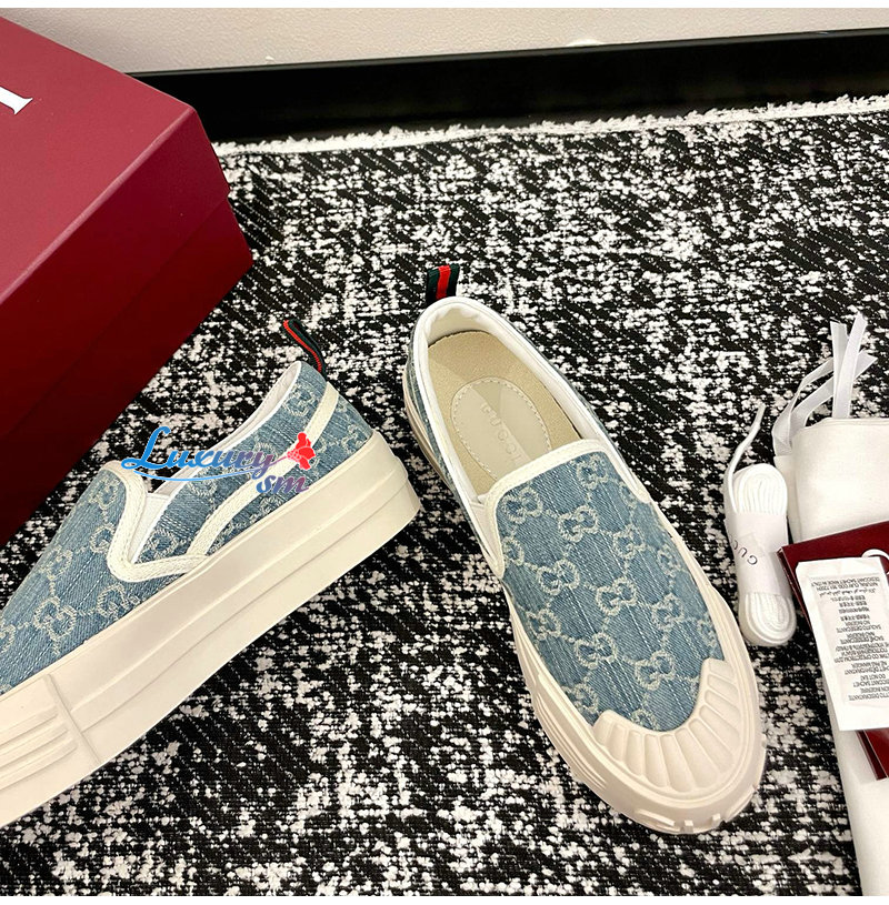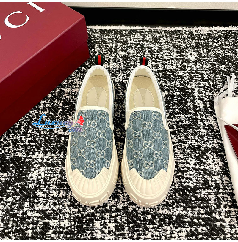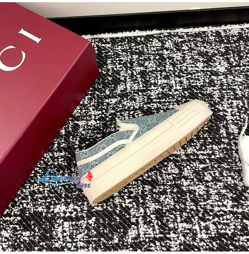 GUCCI-836059 4646 구찌 라이트 블루 GG 데님 슬립온 스니커즈 여성용