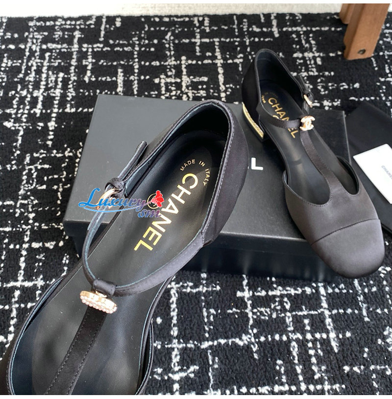 CHANEL-07153 샤넬 블랙 새틴 샌들