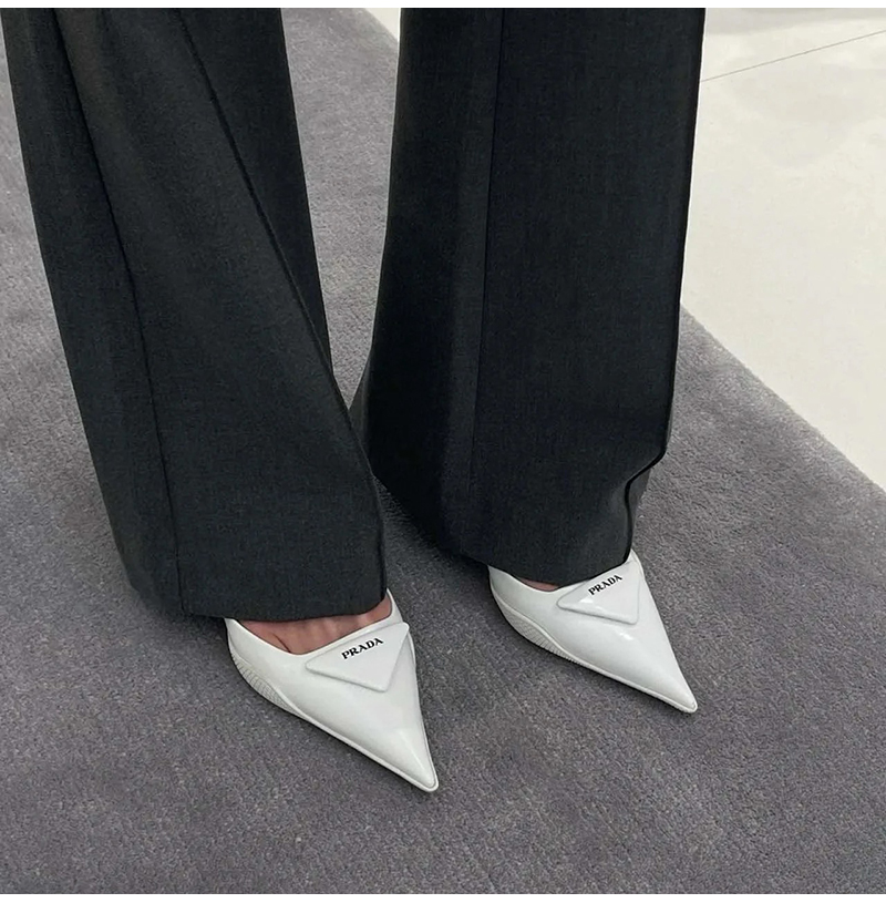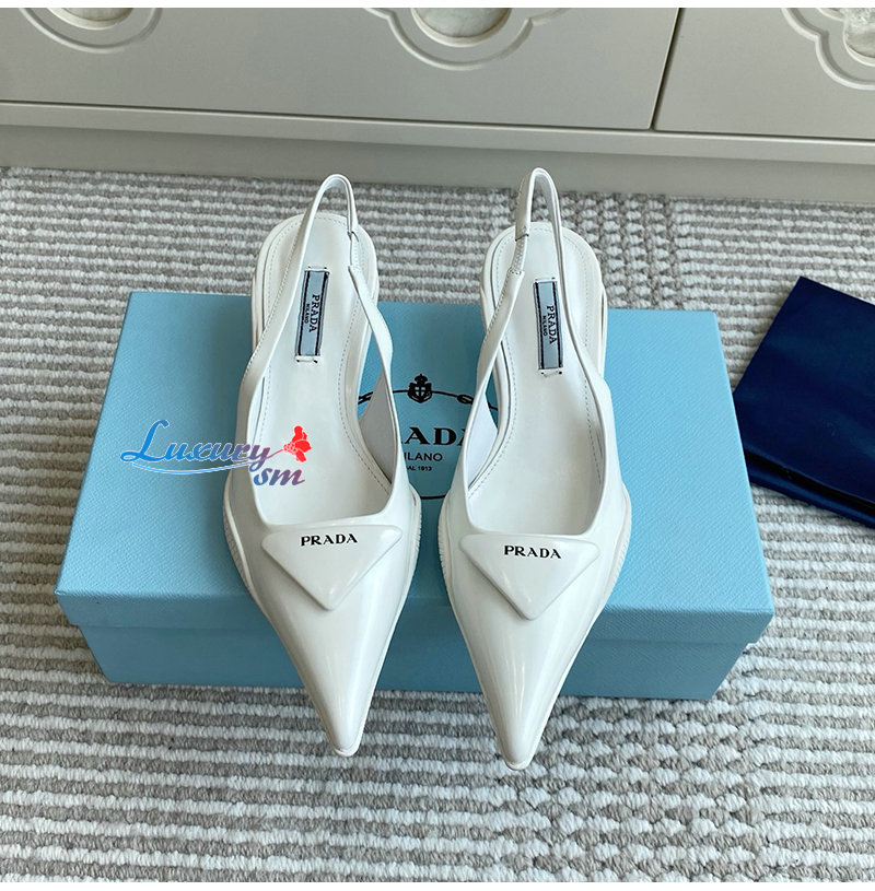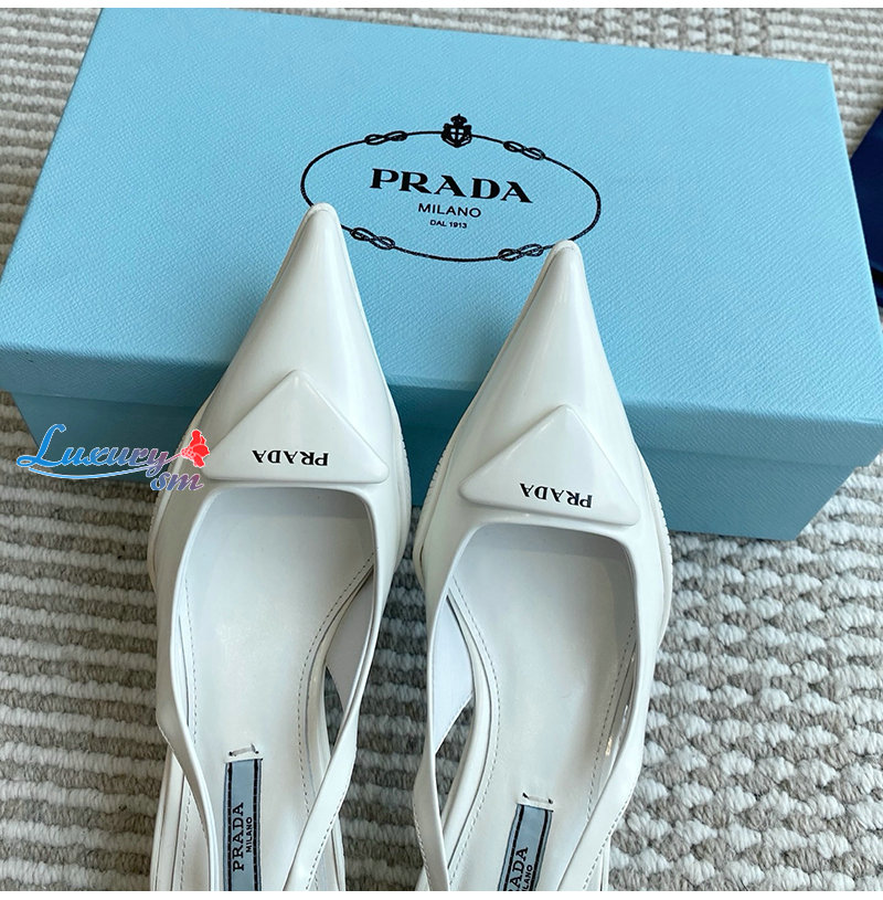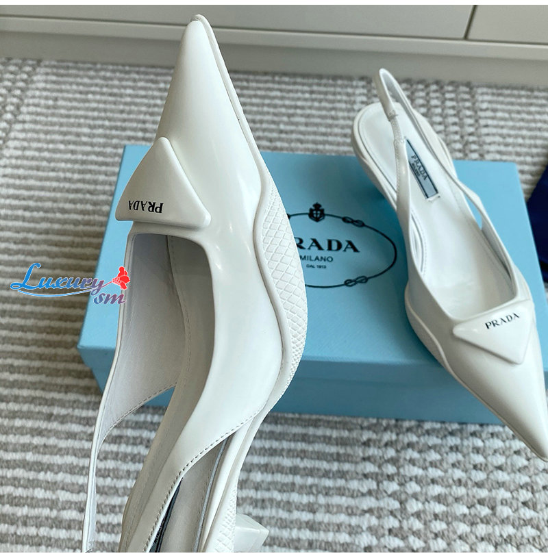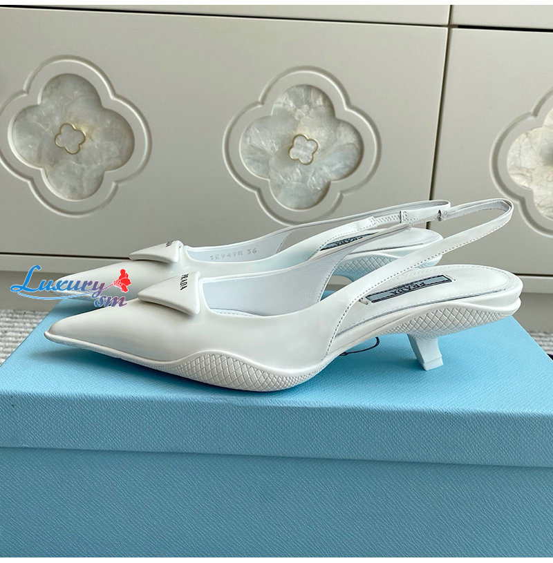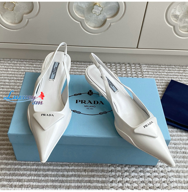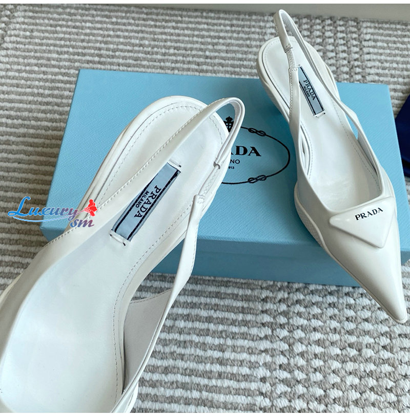 PRADA-07141 프라다 화이트 가죽 슬링백 펌프스