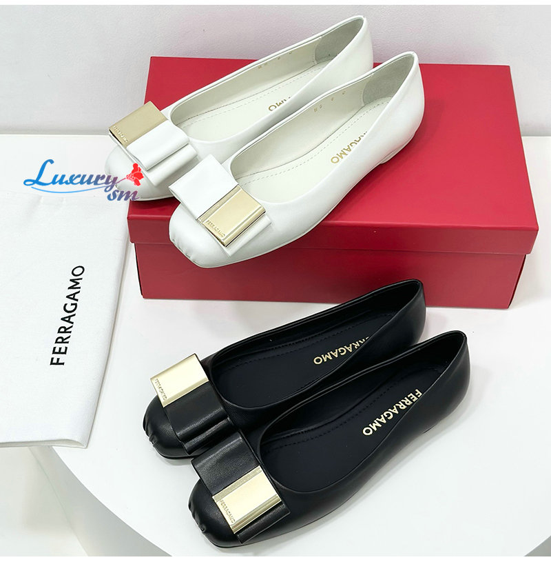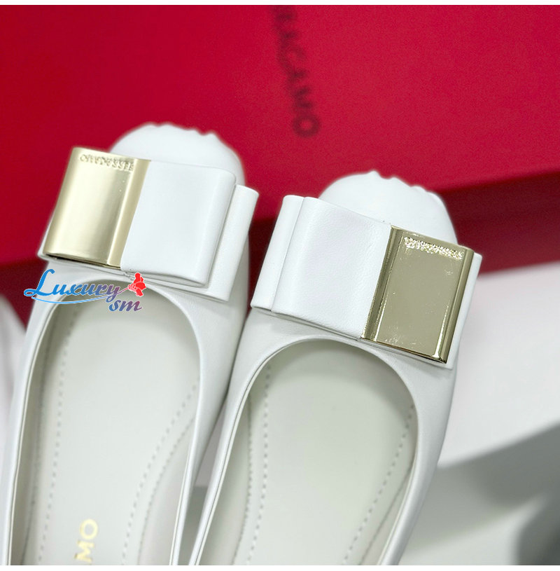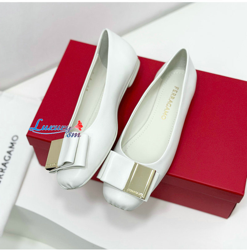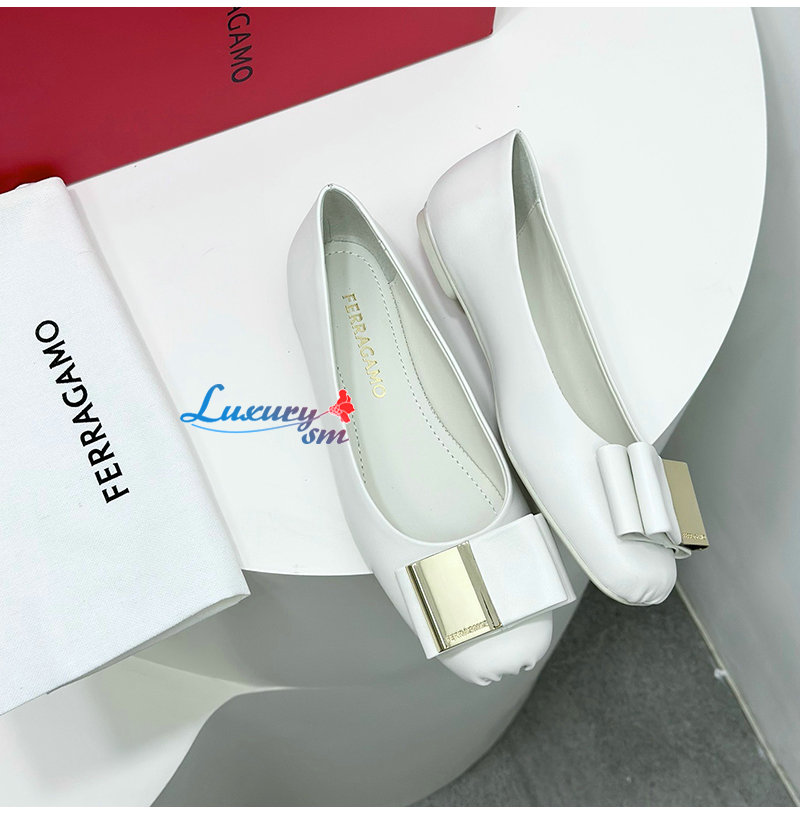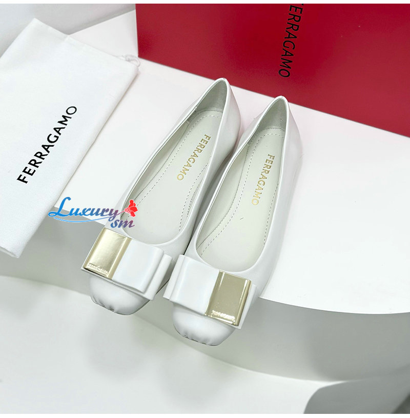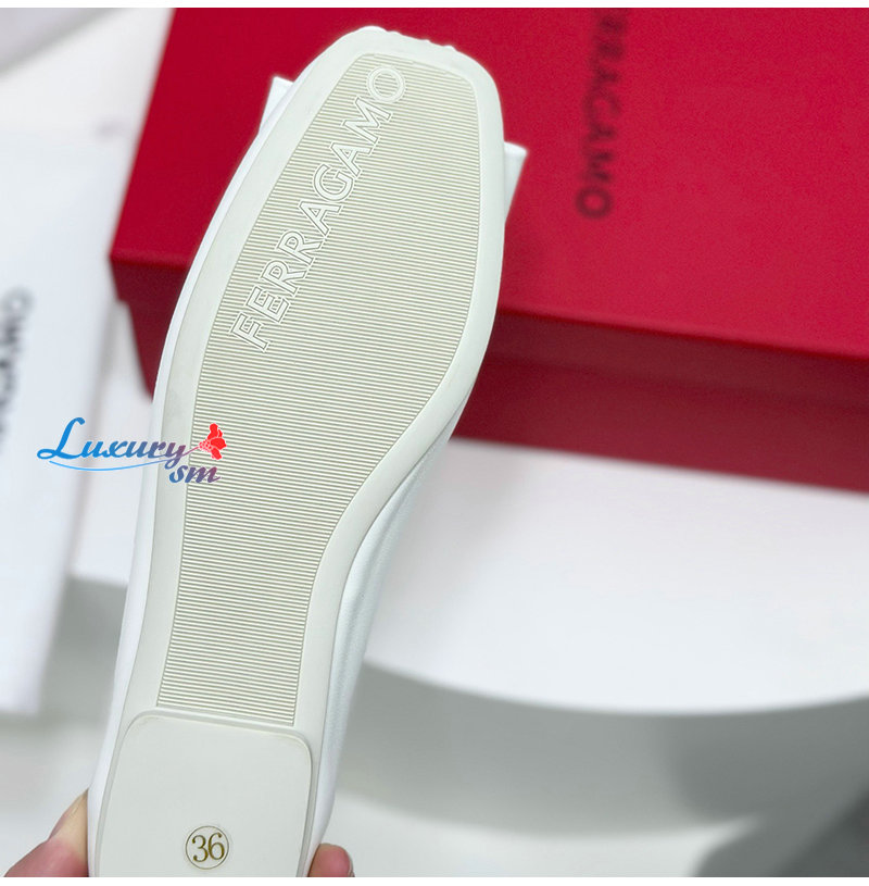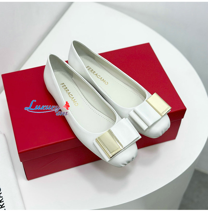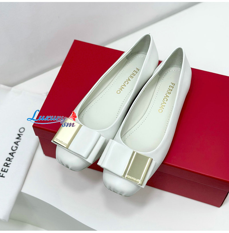 Ferragamo-07114 페라가모 화이트 양가죽 발레 플랫 슈즈