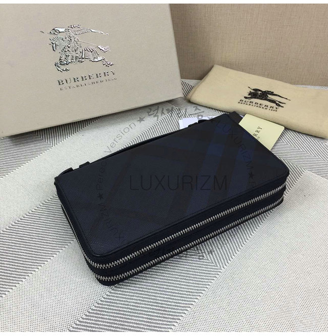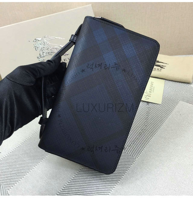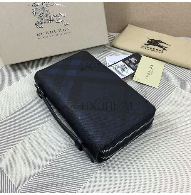 BURBERRY-3998 버버리 스모크 체크 여행 지갑 블랙/네이비