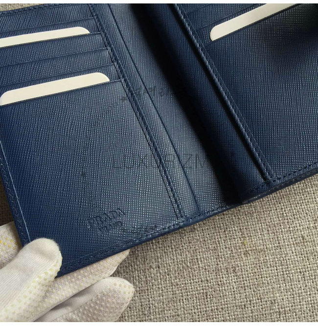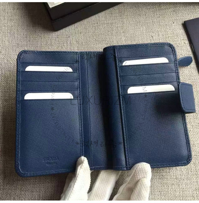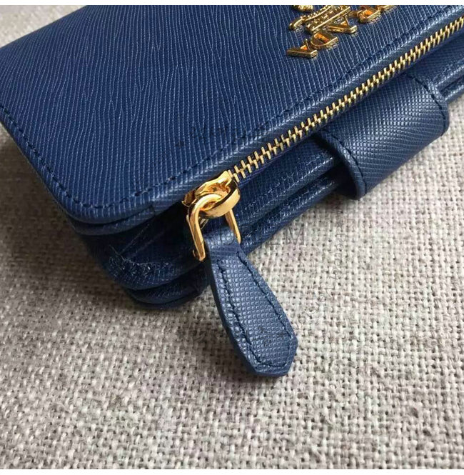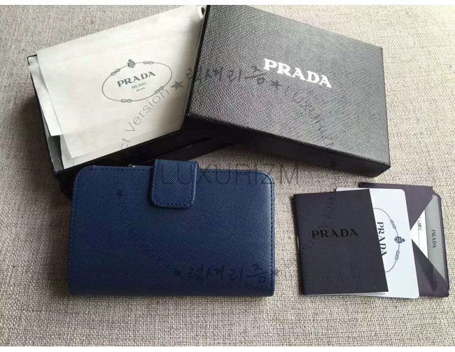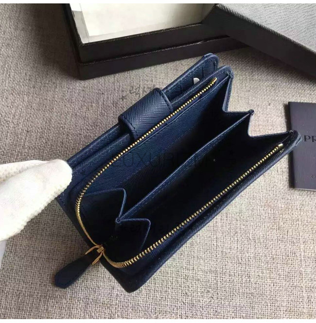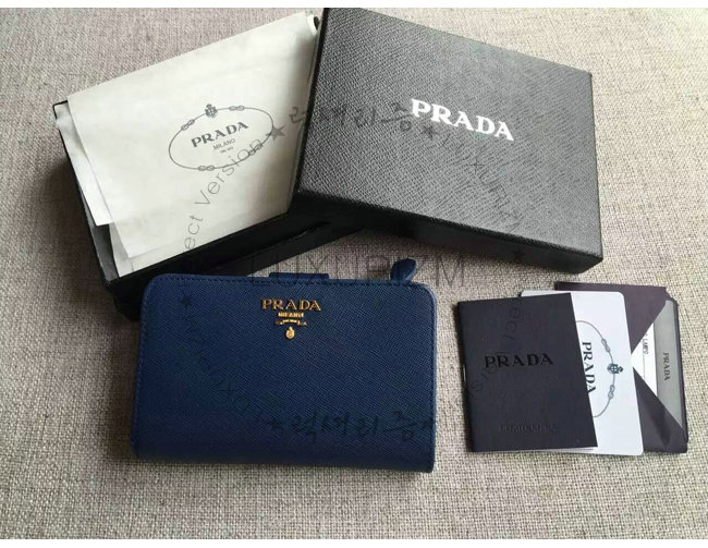 [스페셜오더]PRADA-1ML225 프라다 사피아노 메탈릭 골드 가죽 지갑 네이비
