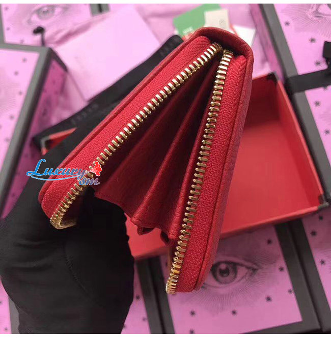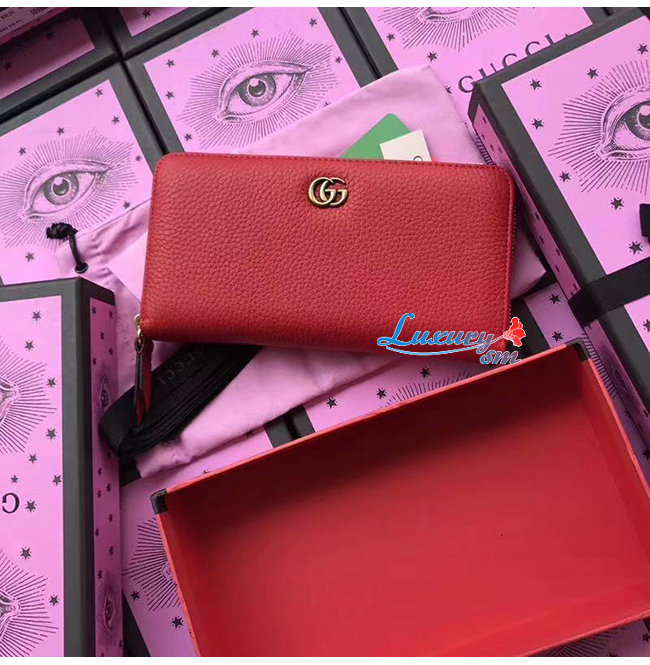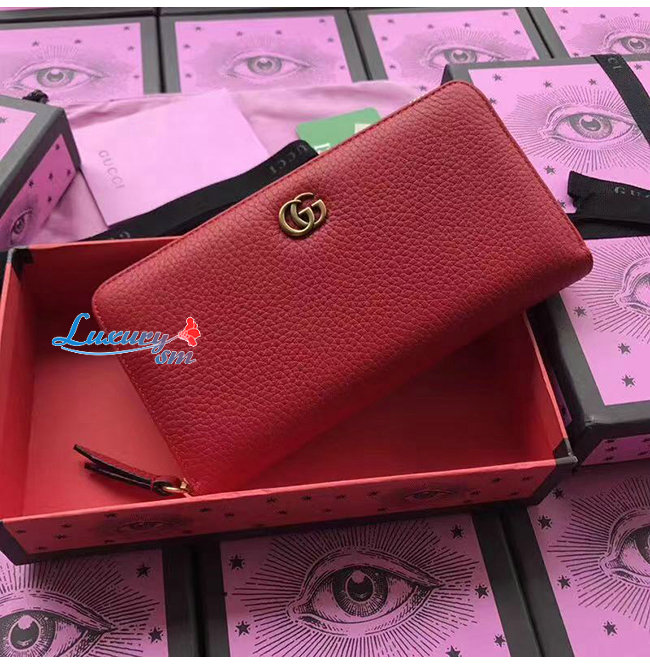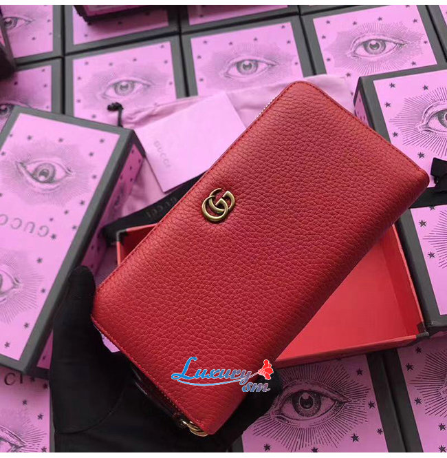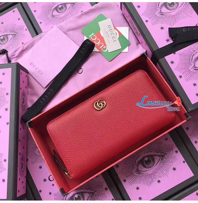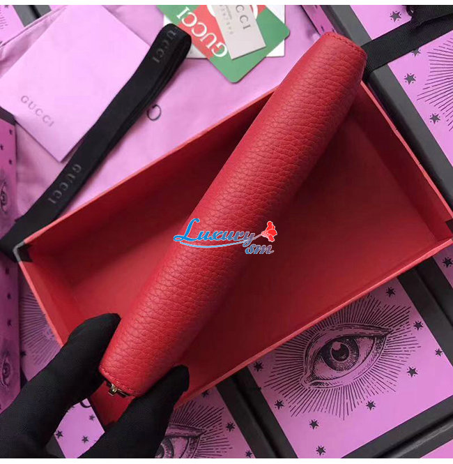 GUCCI-456117 6433 구찌 더블 G 메탈 디테일 레드 지퍼 장 지갑