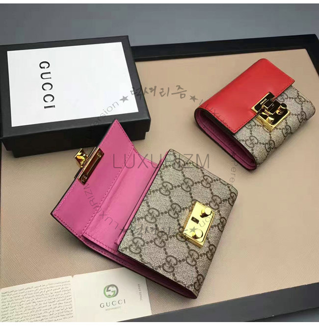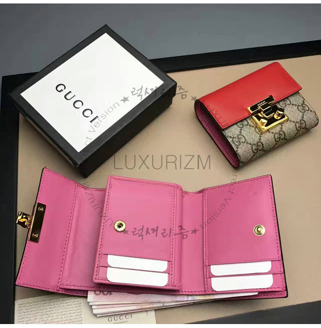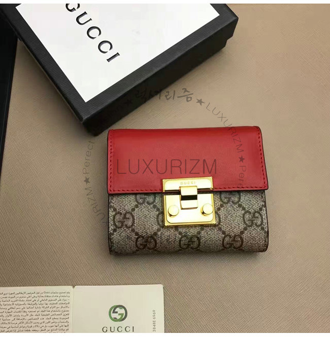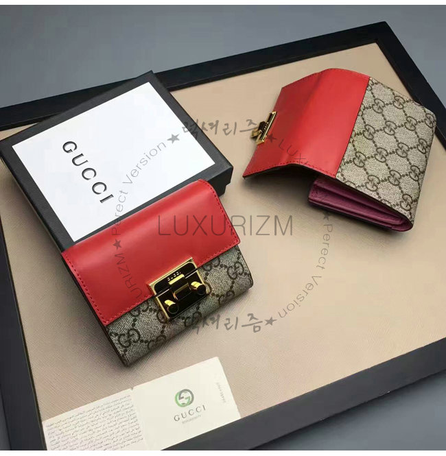 GUCCI-453155 9784 구찌 패드락 GG 수프림 캔버스 지갑 레드