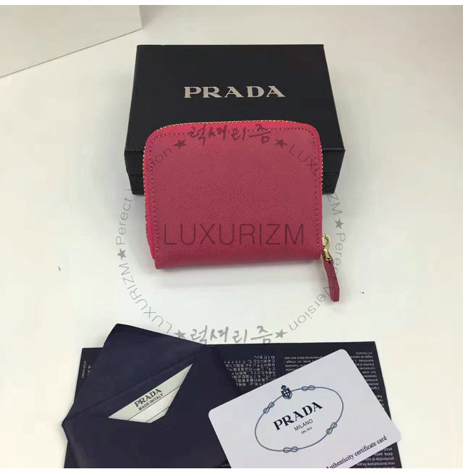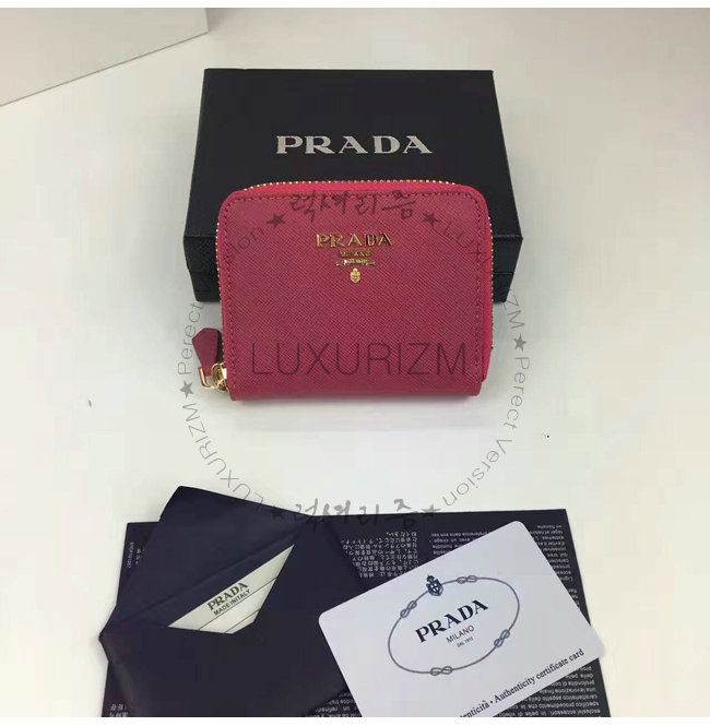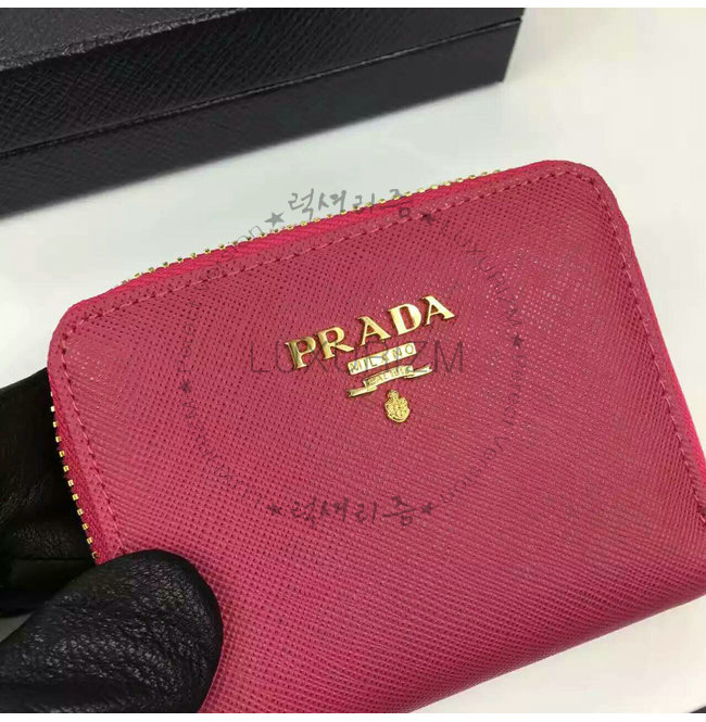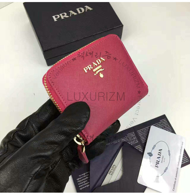 PRADA-1MM268 프라다 사피아노 메탈릭 골드 가죽 동전 지갑 핫핑크