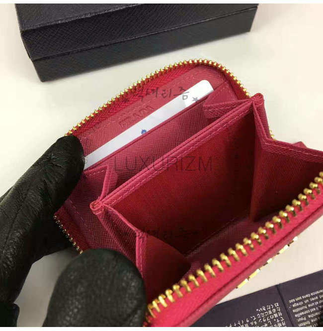 PRADA-1MM268 프라다 사피아노 메탈릭 골드 가죽 동전 지갑 레드