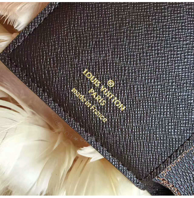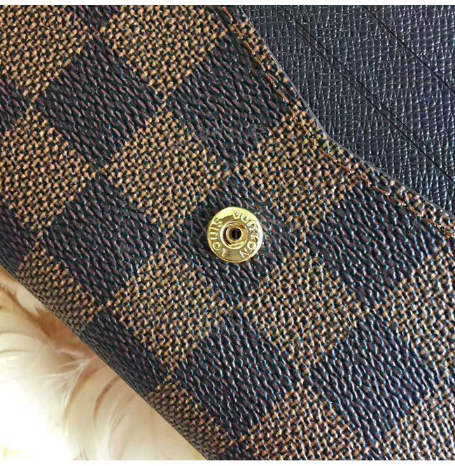 가죽의 커브 된 플랩은 상징적 인 Damier Eb?ne 캔버스를 밝게합니다