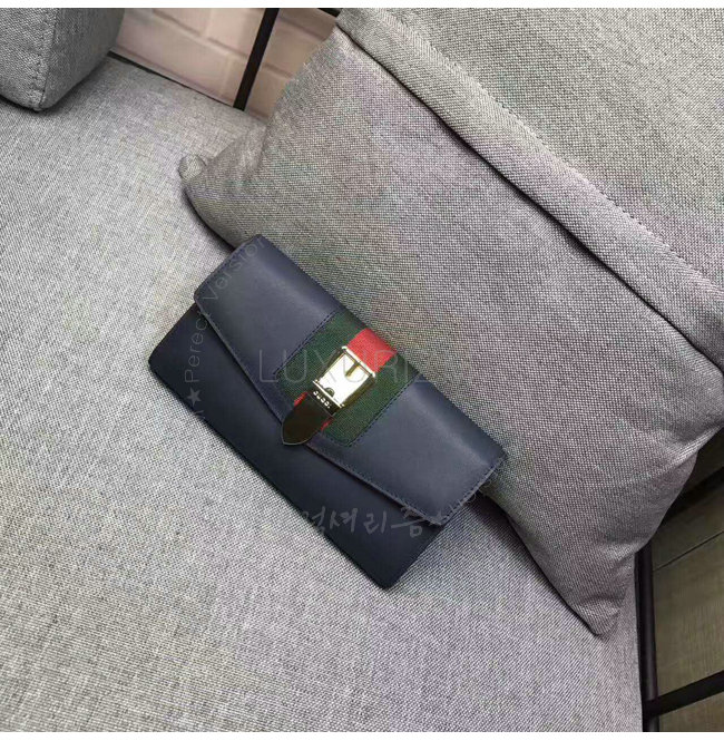 [스페셜오더]GUCCI-476084 4163 구찌 Gucci Sylvie 가죽 장지갑 네이비