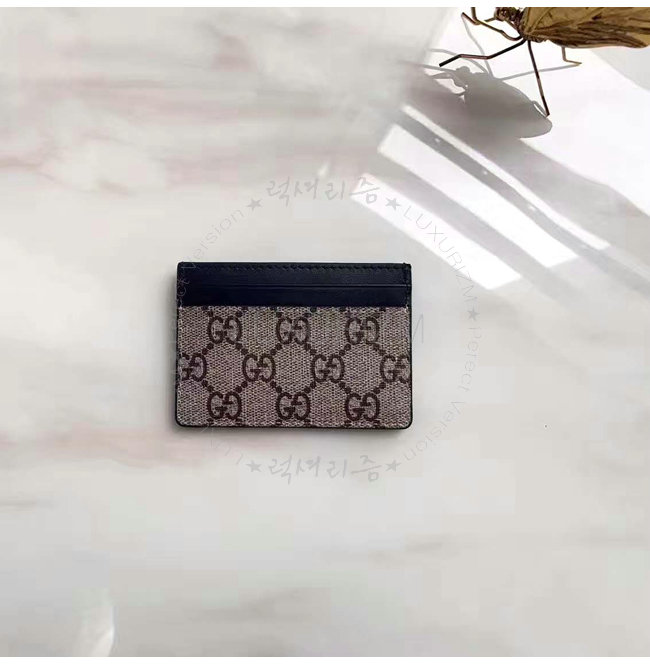 베이지/에보니 GG 수프림 및 타이거 프린트 블랙 가죽 트리밍 5개의 카드 슬롯.