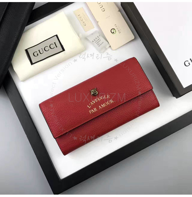 [스폐셜오더]GUCCI-453164 6433 구찌 [Animalier] 애니멀리에 컬렉션 레드 가죽 장지갑