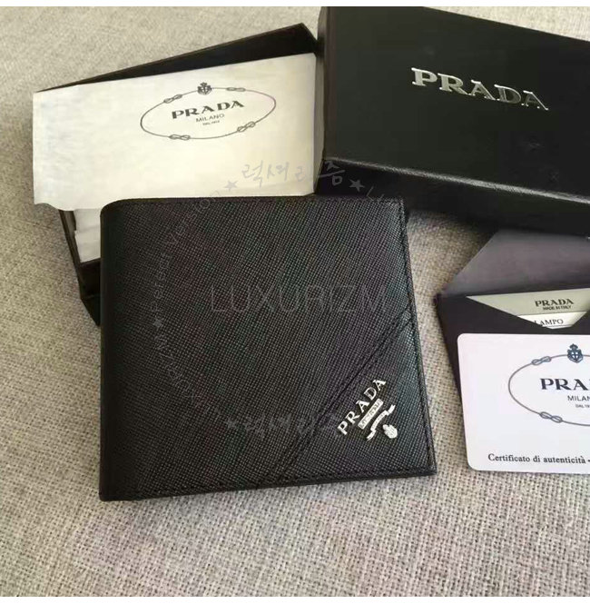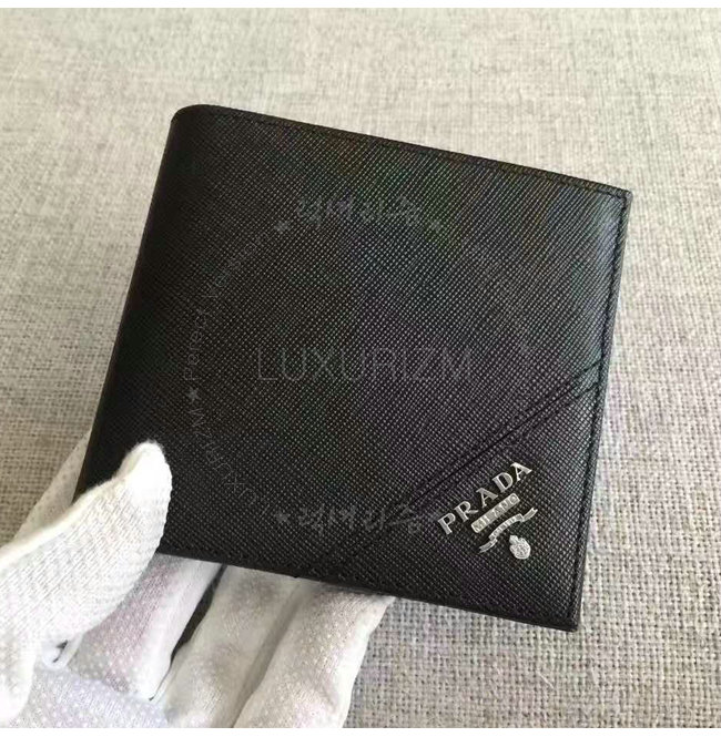 [스페셜오더]PRADA-2MO513 프라다 사피아노 가죽 메탈 로고 지갑 블랙
