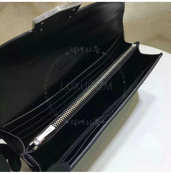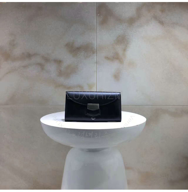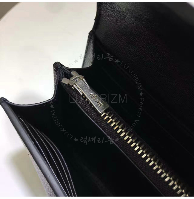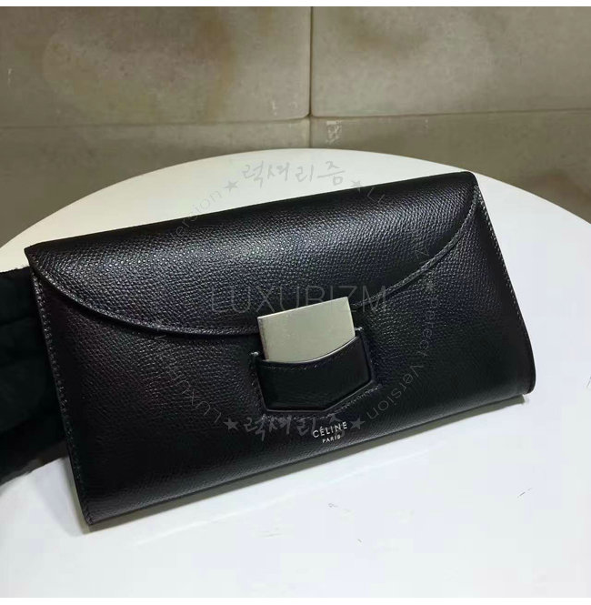 CELINE-107853 셀린느 블랙 카프스킨 멀티펑션 트로터 라지 플랩 장지갑