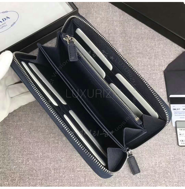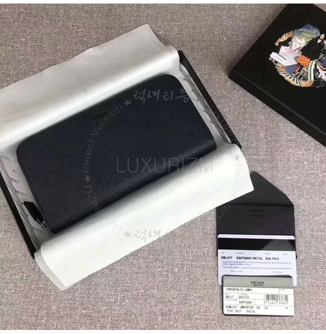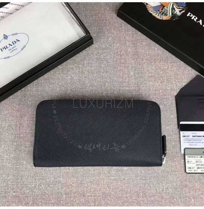 [스페셜오더]PRADA-2ML317 프라다 사피아노 가죽 히트 엠보싱 로고 블랙 지퍼 지갑