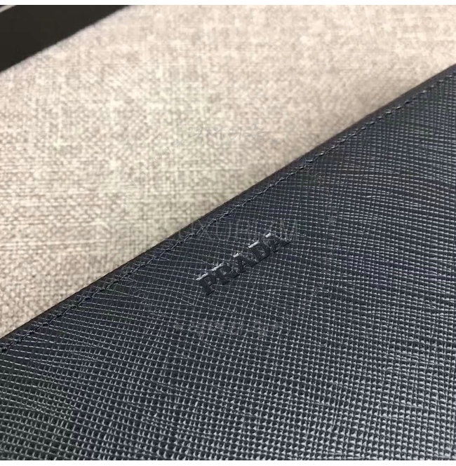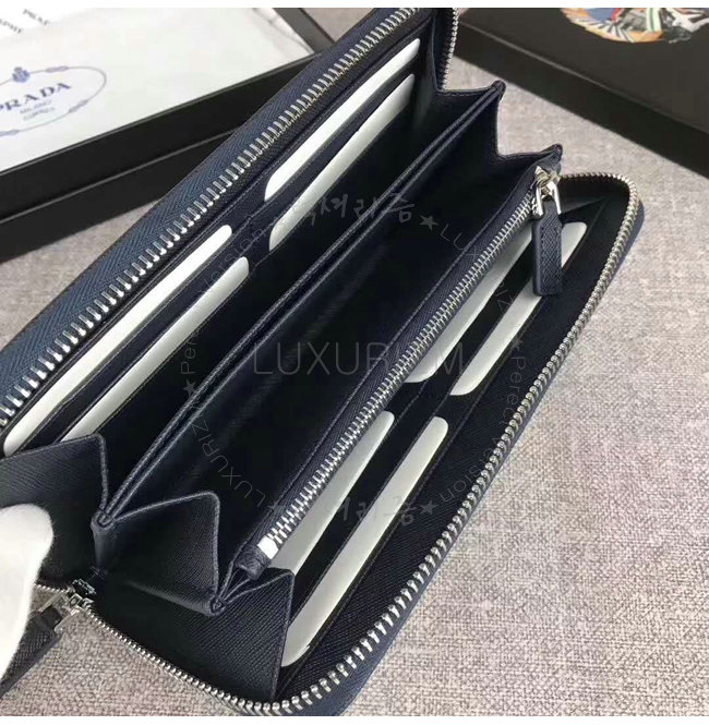 [스페셜오더]PRADA-2ML317 프라다 사피아노 가죽 히트 엠보싱 로고 발틱 블루 지퍼 지갑