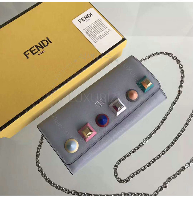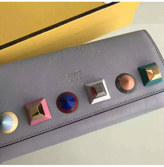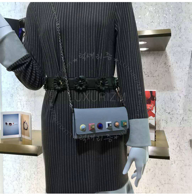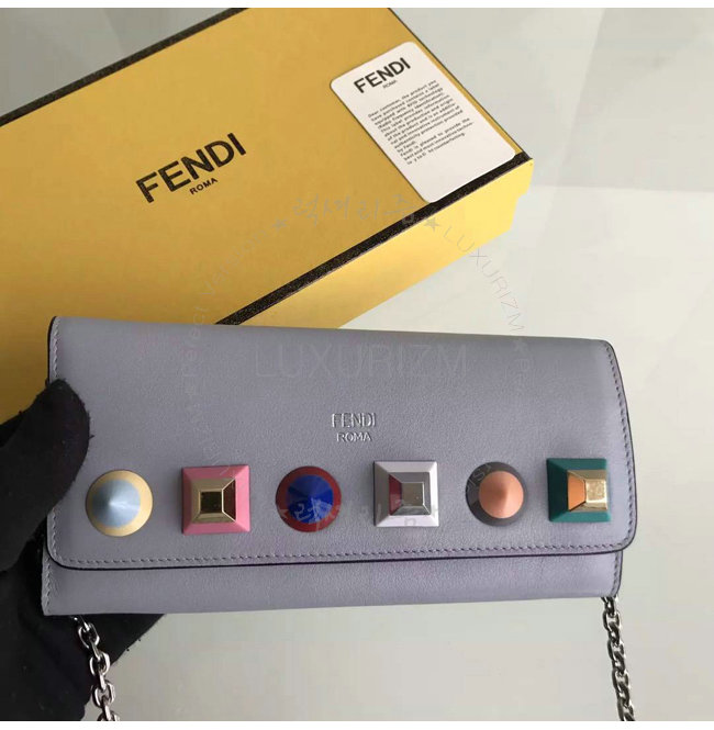 [스페셜오더]FENDI-8M0365 펜디 송아지 가죽 멀티 컬러 스터드 장식 그레이 체인 지갑