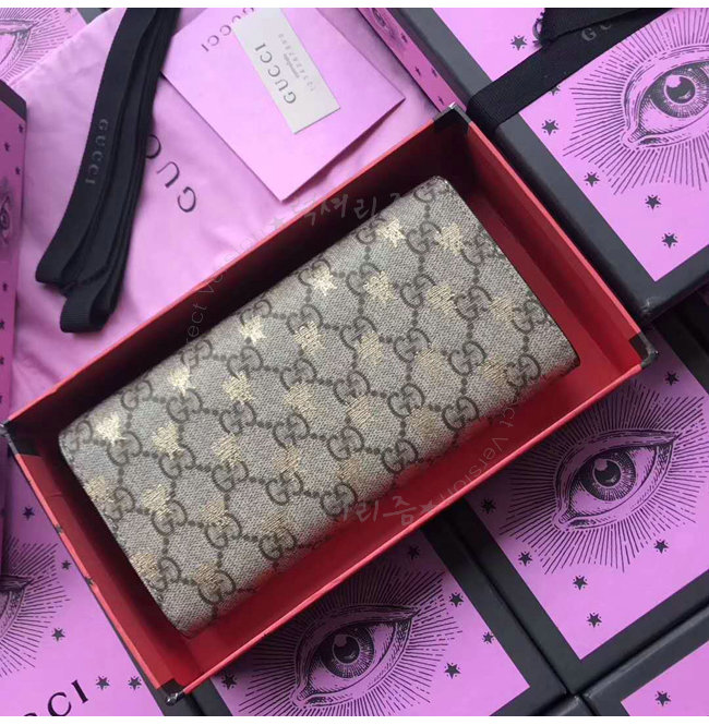 [스페셜오더]GUCCI-410100 8319 구찌 GG 수프림 캔버스 꿀벌 프린트 장지갑
