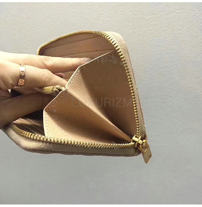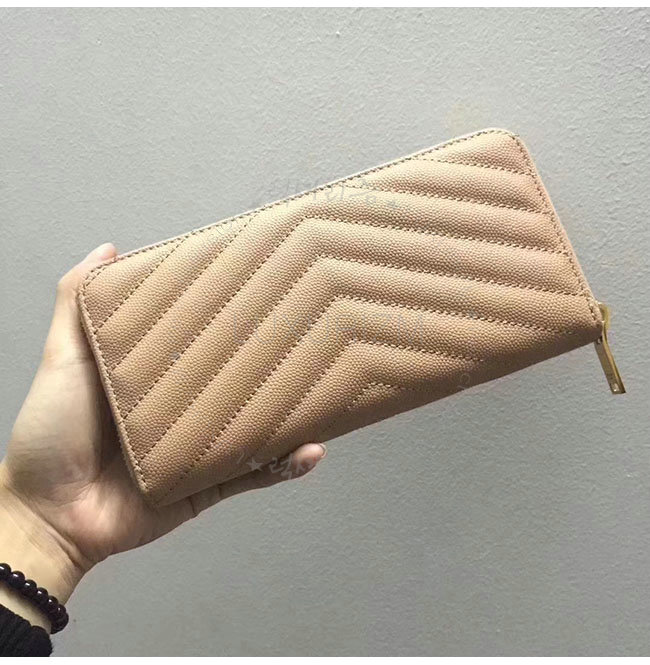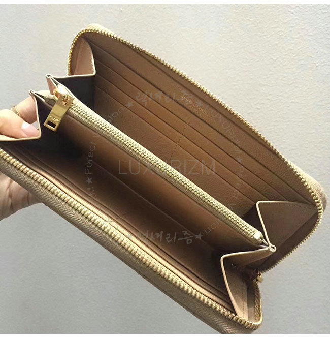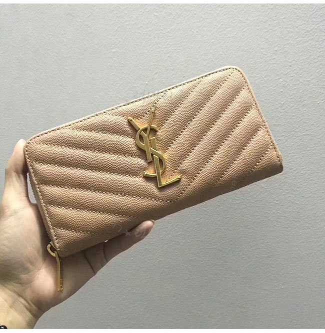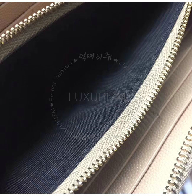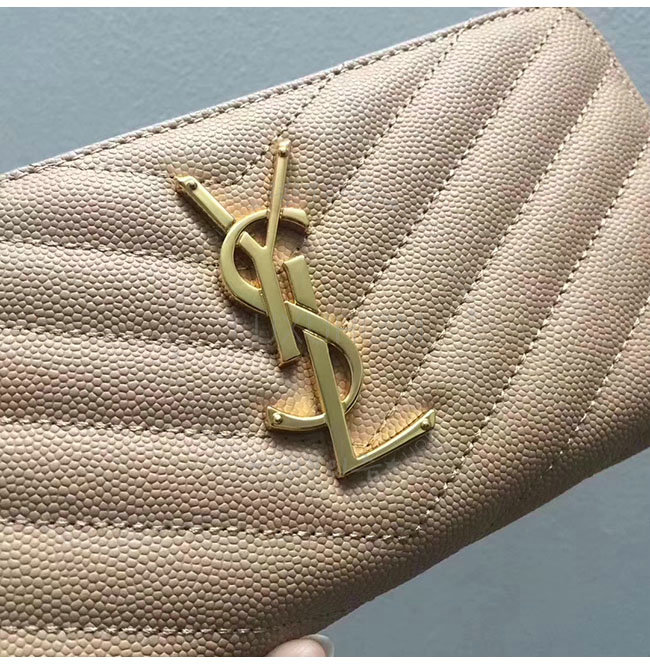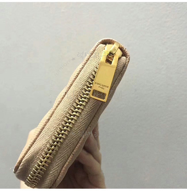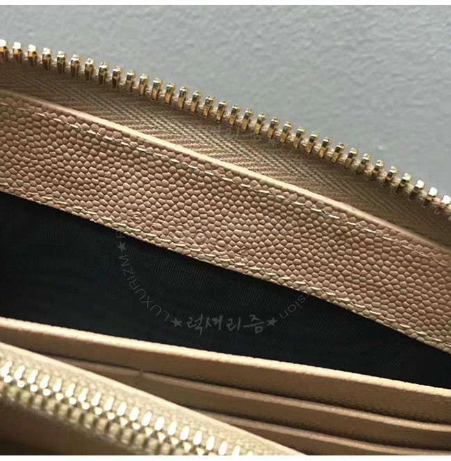 [스폐셜오더]SAINT LAURENT-358094 생로랑 베이지 그랑 드 뿌드르 텍스처드 마틀라세 가죽 소재의 금장 모노그램 생 로랑 지퍼 어라운드 지갑