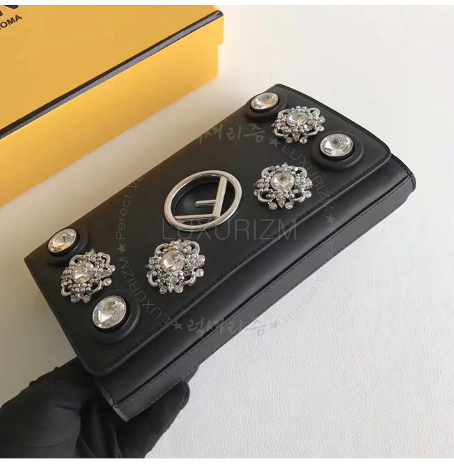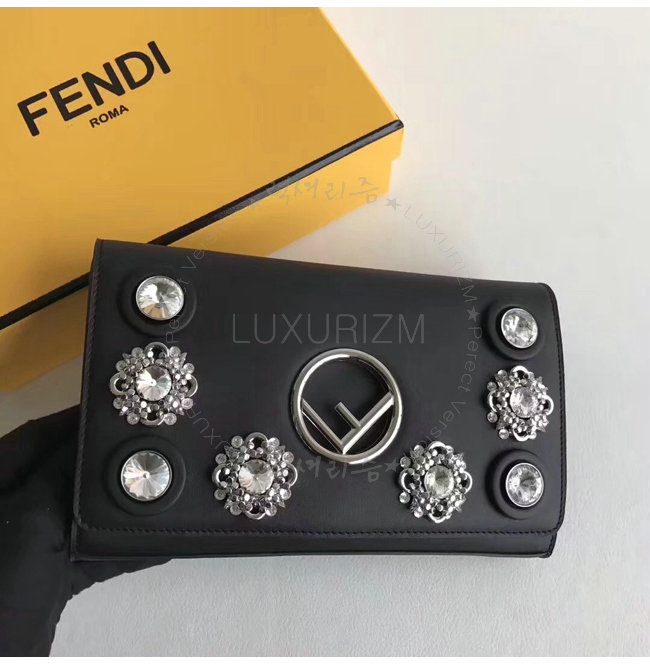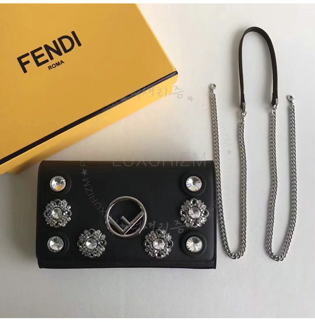 [스페셜오더]FENDI-8BS004 펜디 송아지 가죽 F IS FENDI 주얼 아플리케 장식 블랙 체인 지갑