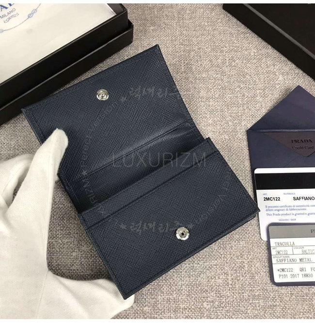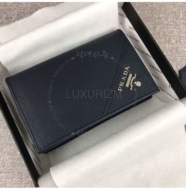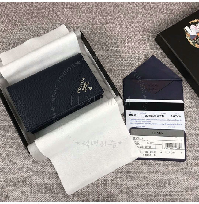 [스페셜오더]PRADA-2MC122 프라다 사피아노 가죽 메탈 로고 발틱 블루 카드 지갑
