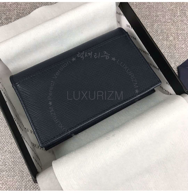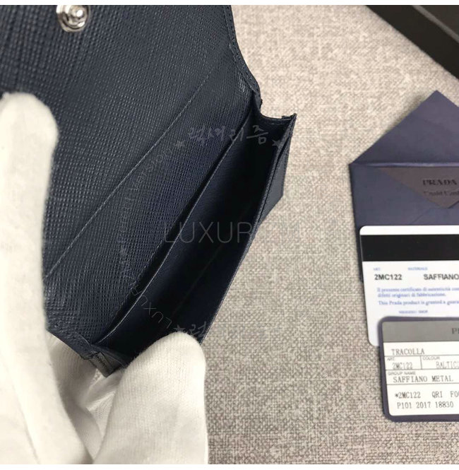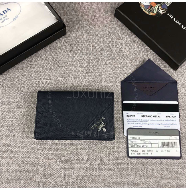 [스페셜오더]PRADA-2MC122 프라다 사피아노 가죽 메탈 로고 블랙 발틱 블루 카드 지갑 가격 : 140,000원