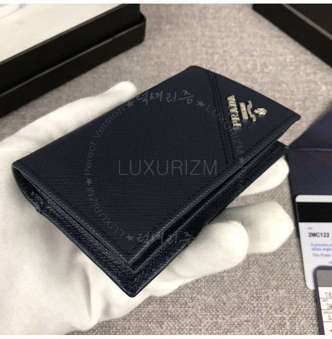 [스페셜오더]PRADA-2MC122 프라다 사피아노 가죽 메탈 로고 블랙 카드 지갑 가격 : 140,000원