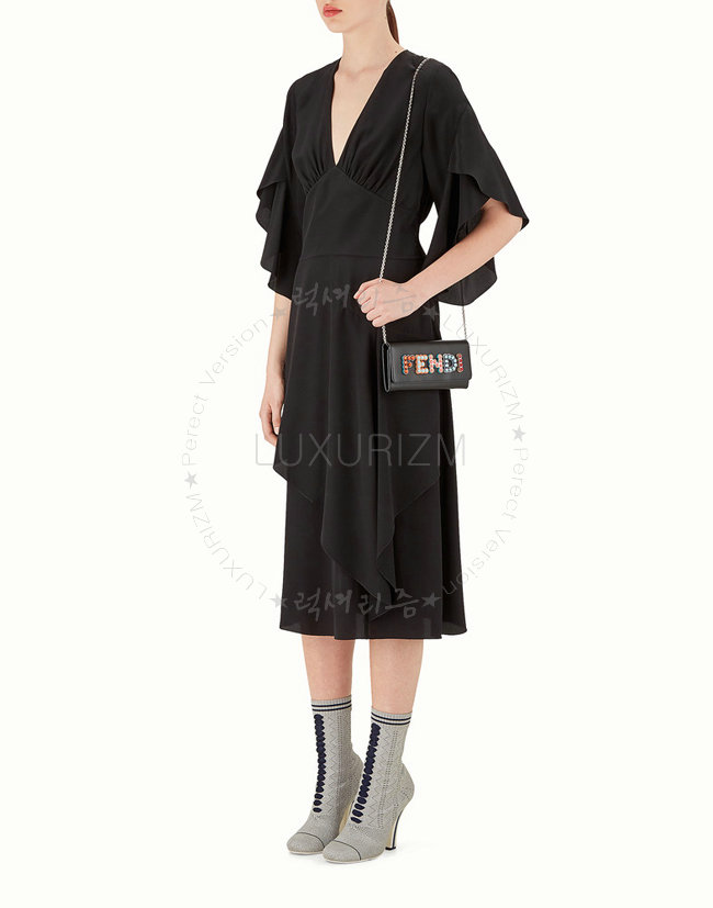 [스페셜오더]FENDI-8M0365 펜디 송아지 가죽 스터드 장식 블랙 체인 장지갑