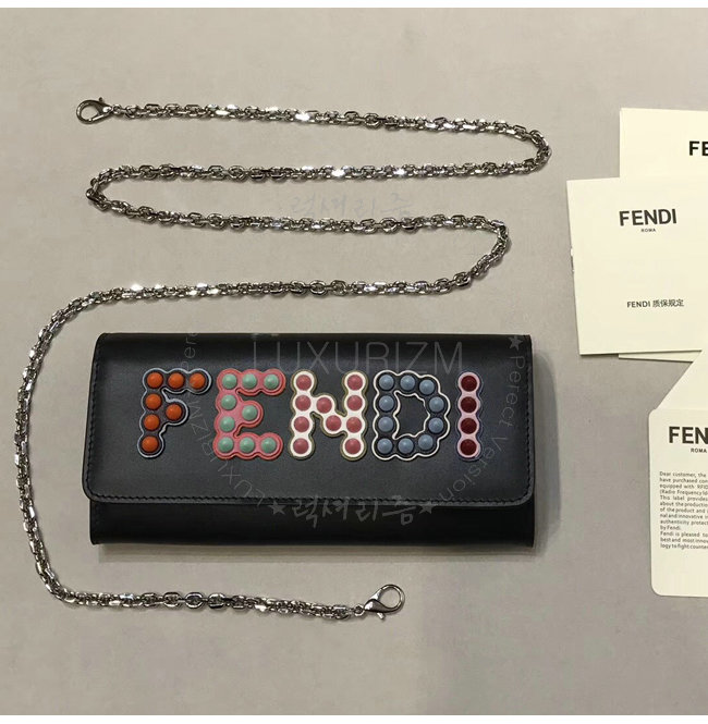 [스페셜오더]FENDI-8M0365 펜디 송아지 가죽 멀티 컬러 스터드 장식 블랙 체인 지갑