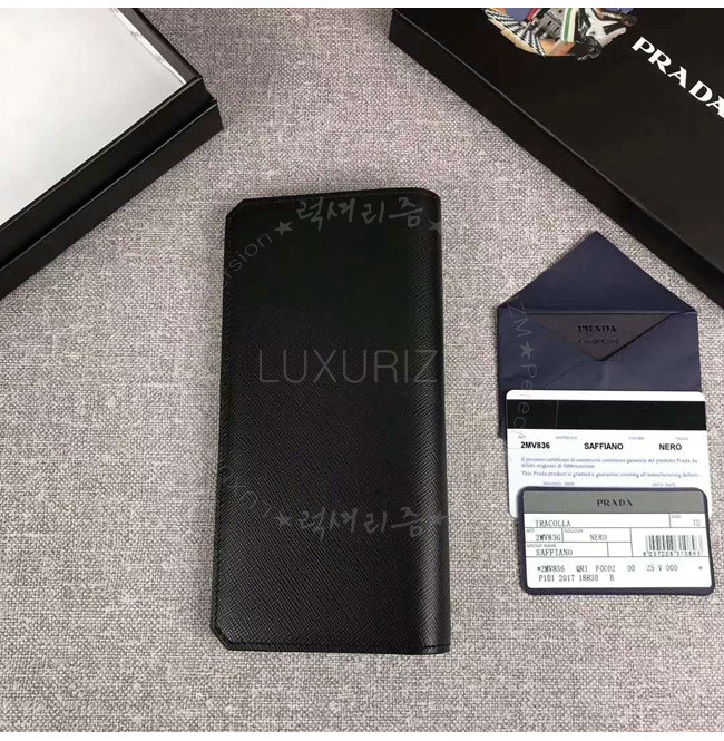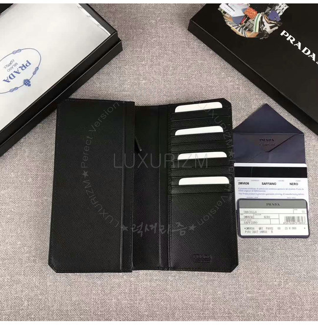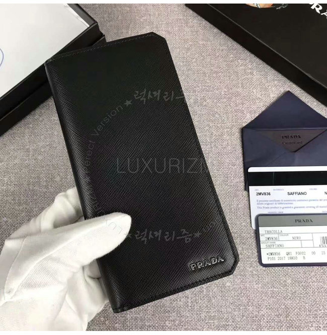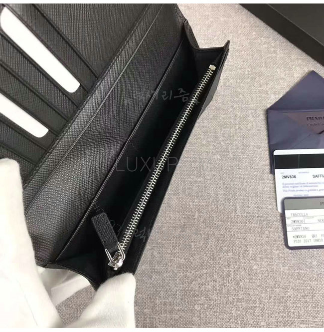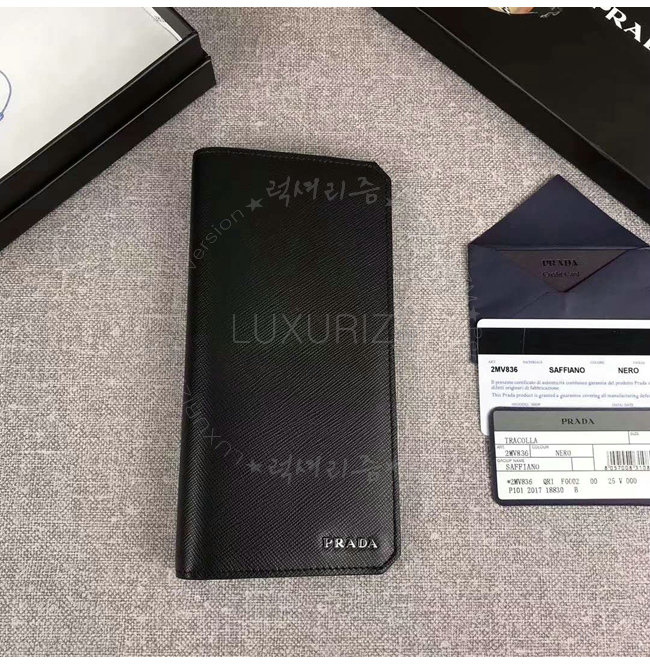[스페셜오더]PRADA-2MV836 프라다 사피아노 가죽 메탈 로고 블랙 장지갑