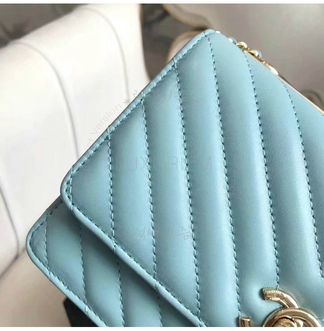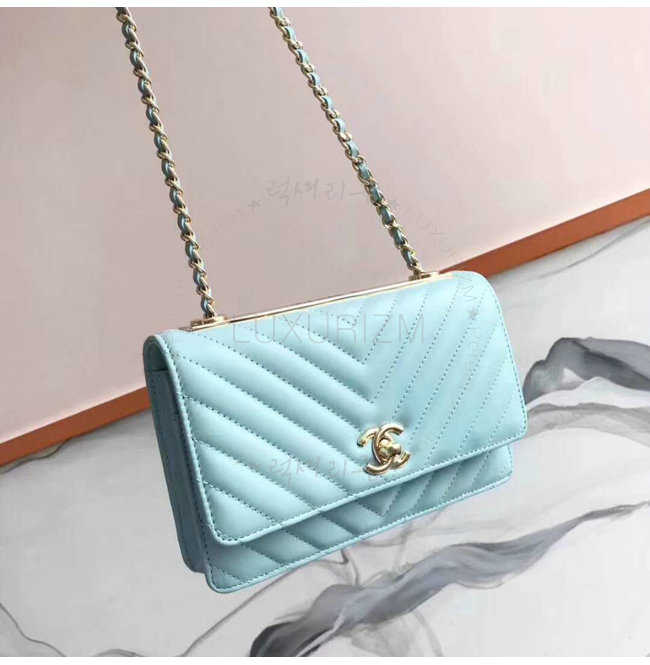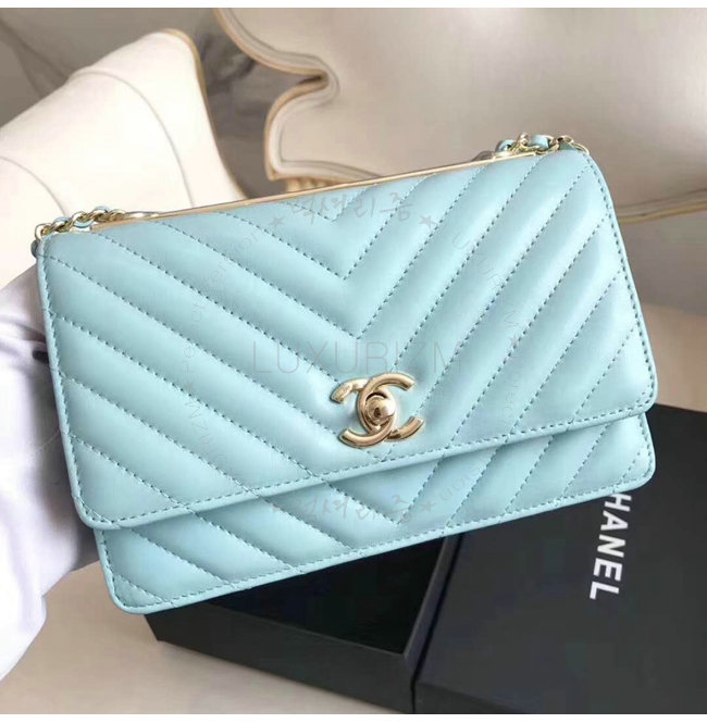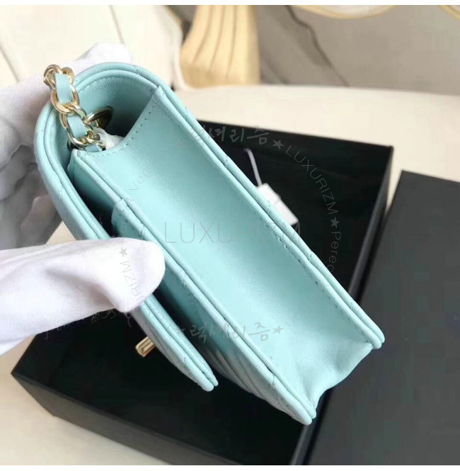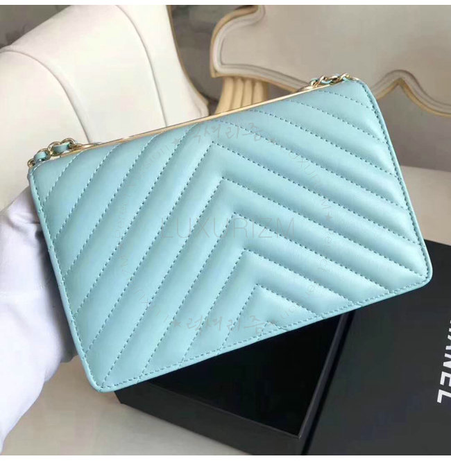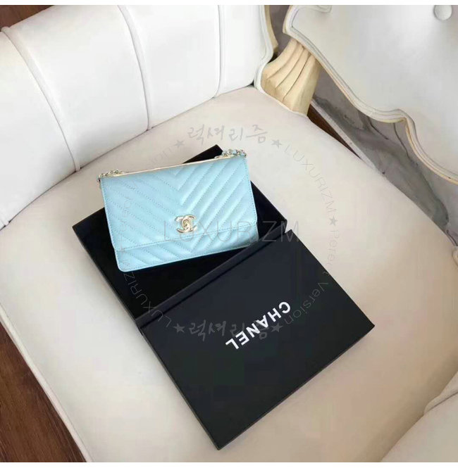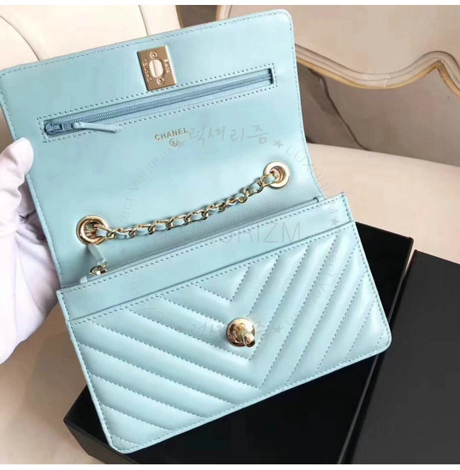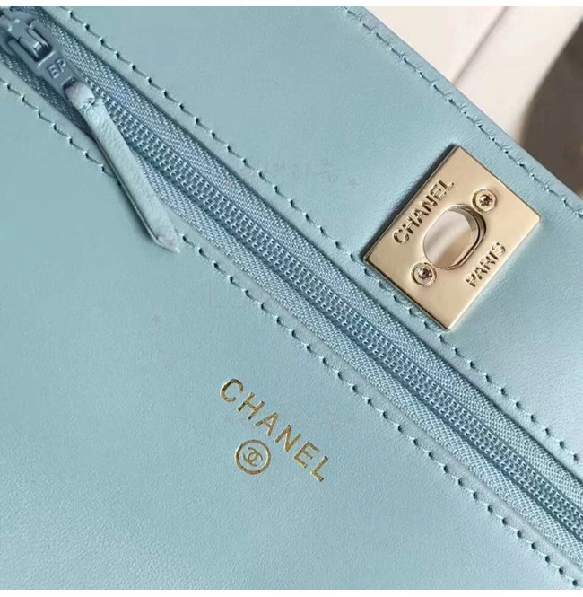 [스페셜오더]CHANEL-A80982 샤넬 램스킨 골드 메탈 블루 체인 지갑