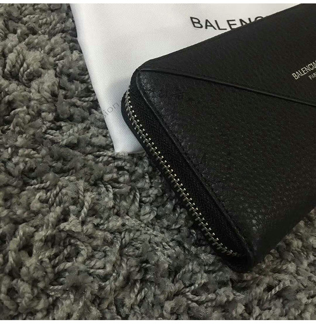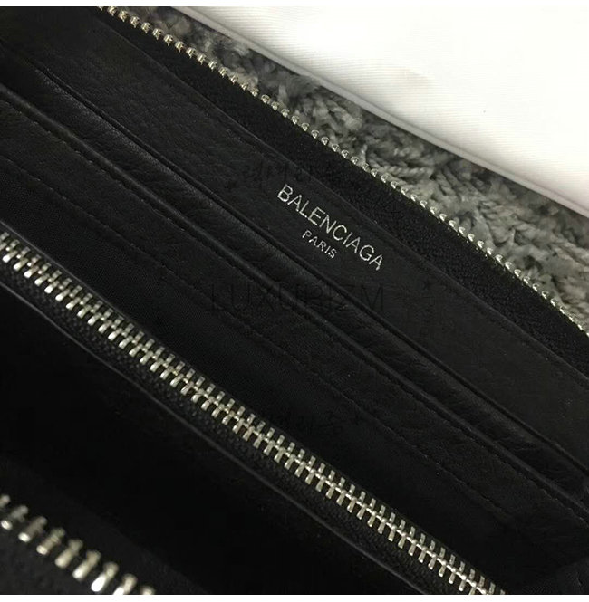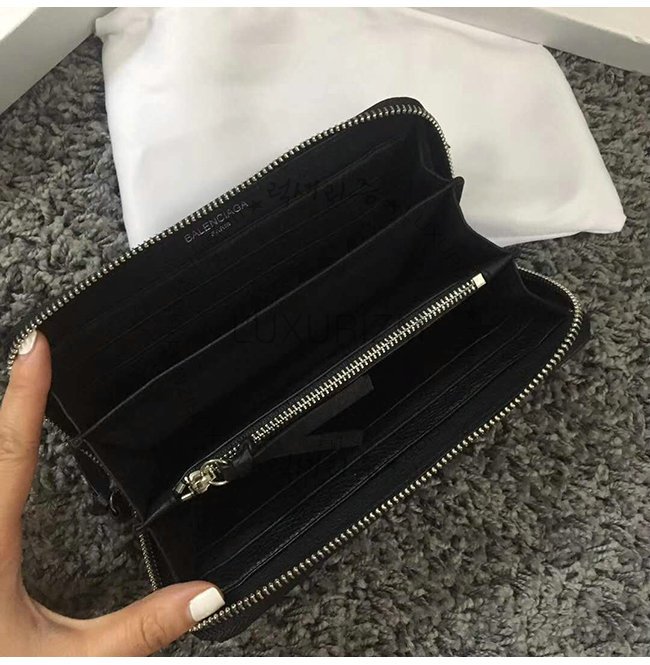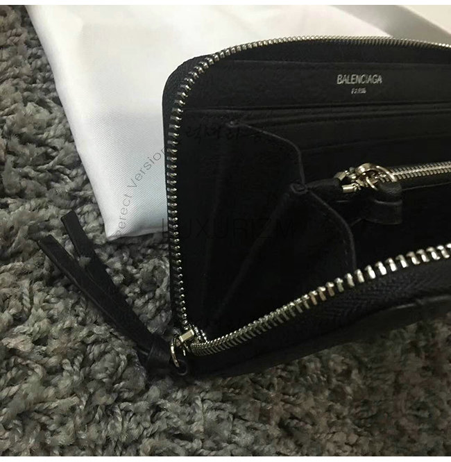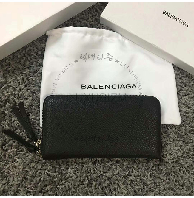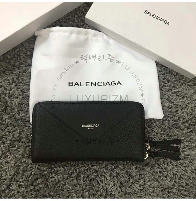 BALENCIAGA-381226 발렌시아가 블랙 송아지 가죽 빠삐에 컨티넨탈 지퍼 어라운드 지갑