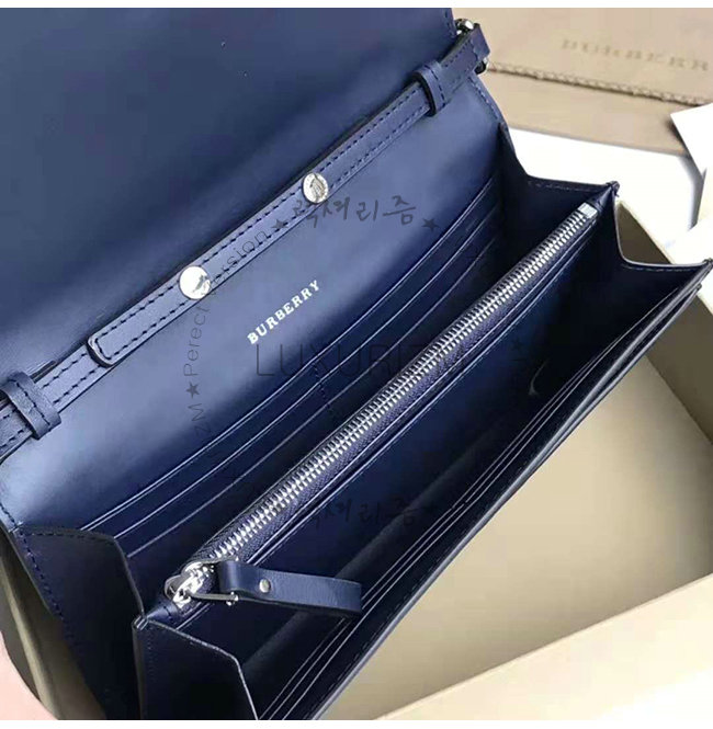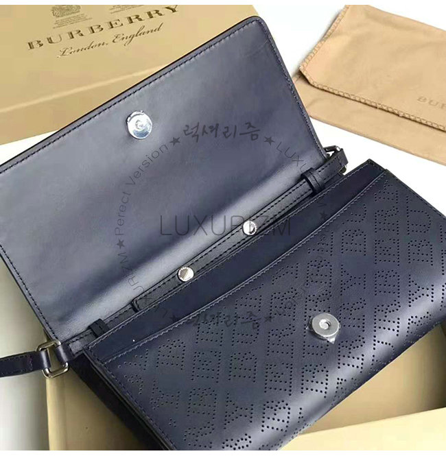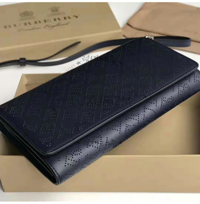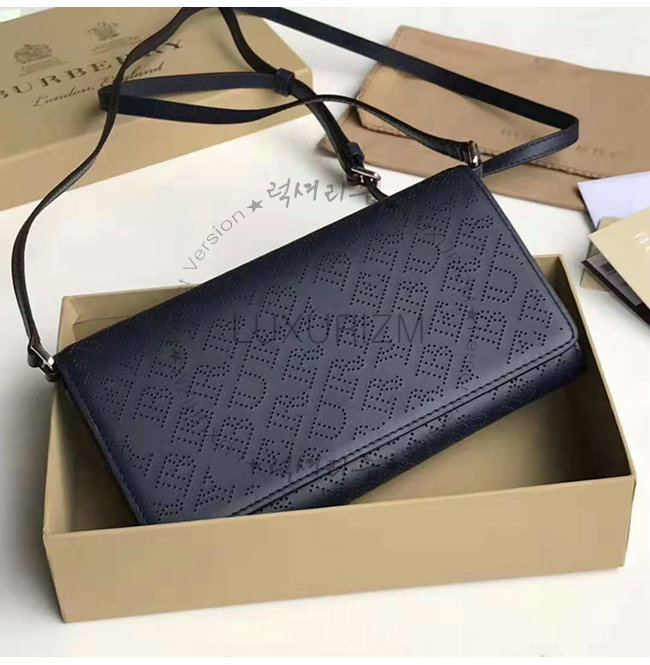 [스페셜오더]BURBERRY-40789581 버버리 네이비 송아지 가죽 디태처블 스트랩 퍼포레이트 로고 지갑