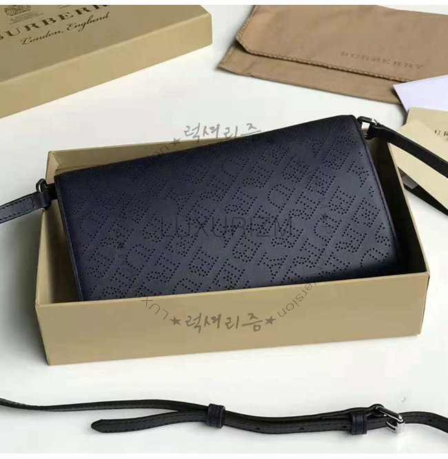 [스페셜오더]BURBERRY-40789581 버버리 블랙 송아지 가죽 디태처블 스트랩 퍼포레이트 로고 지갑