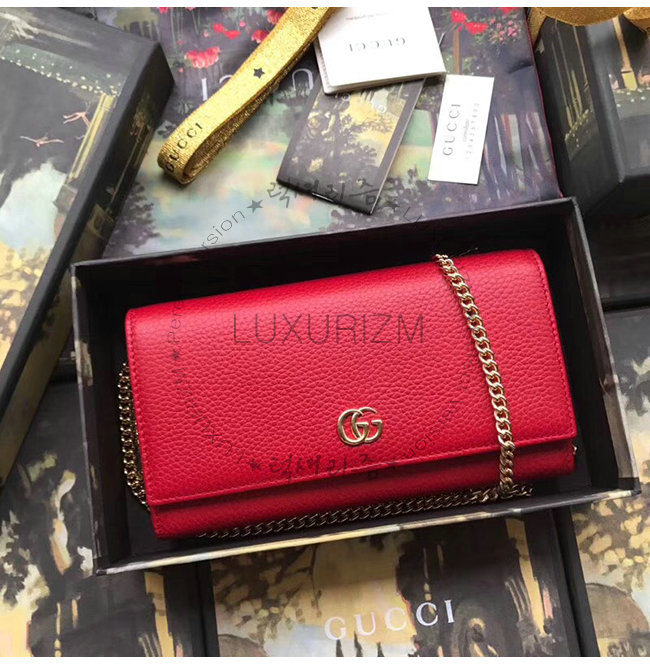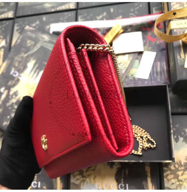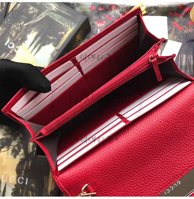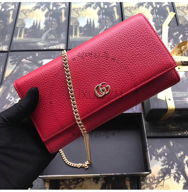 [스페셜오더]GUCCI-546585 6433 구찌 GG 마몽 레드 가죽 체인 월릿