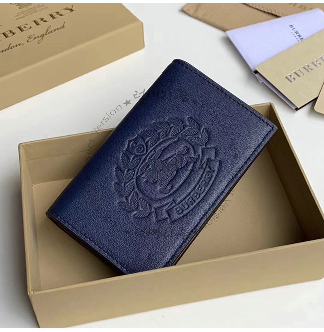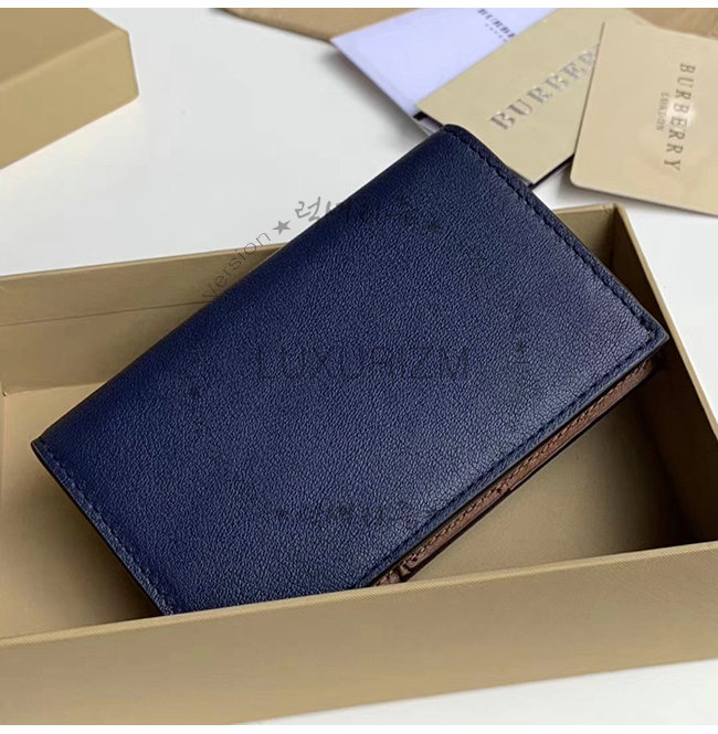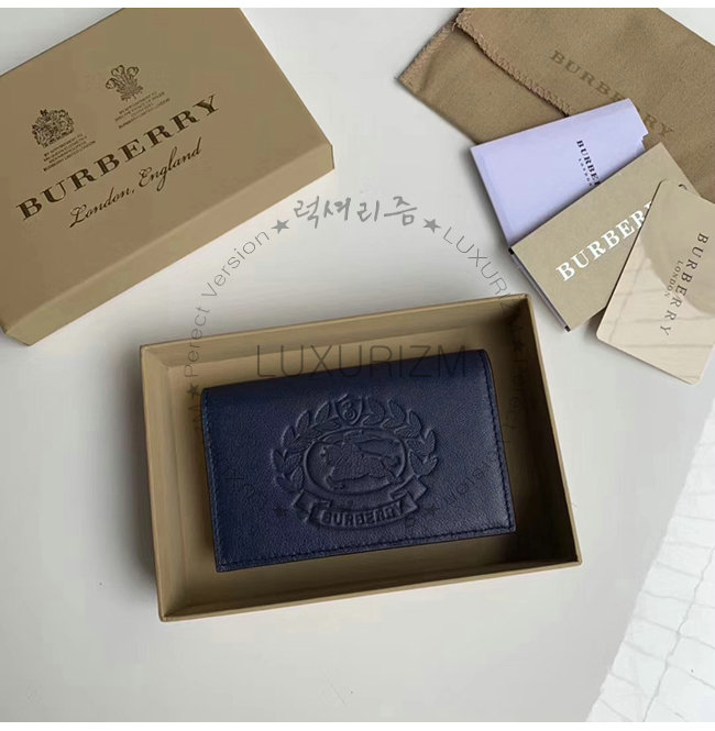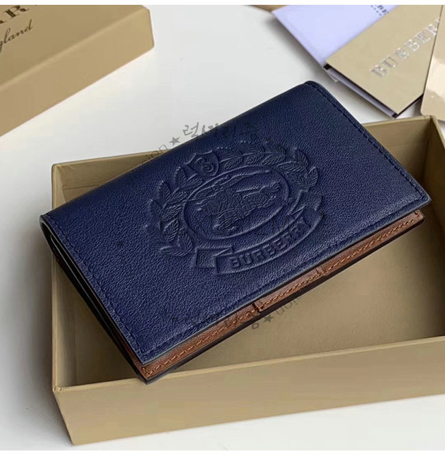 [스페셜오더]BURBERRY-40800881 버버리 네이비 송아지 가죽 스몰 엠보싱 크레스트 투톤 지갑