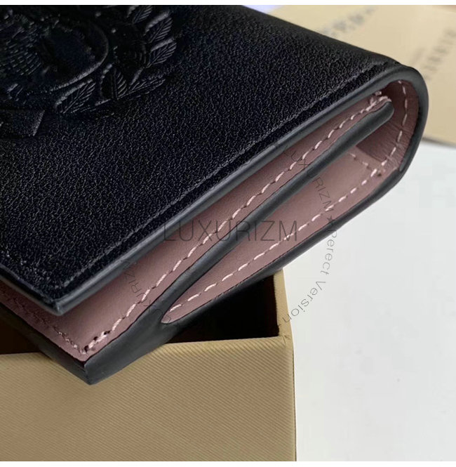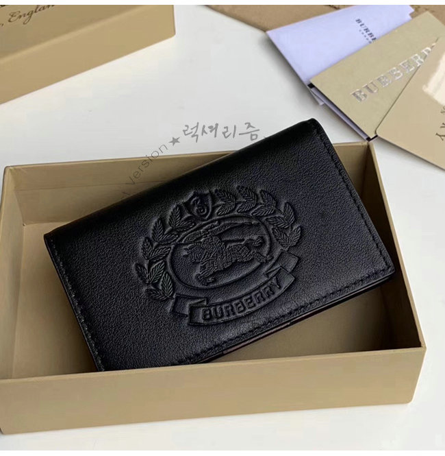 [스페셜오더]BURBERRY-40800881 버버리 블랙 송아지 가죽 스몰 엠보싱 크레스트 투톤 지갑