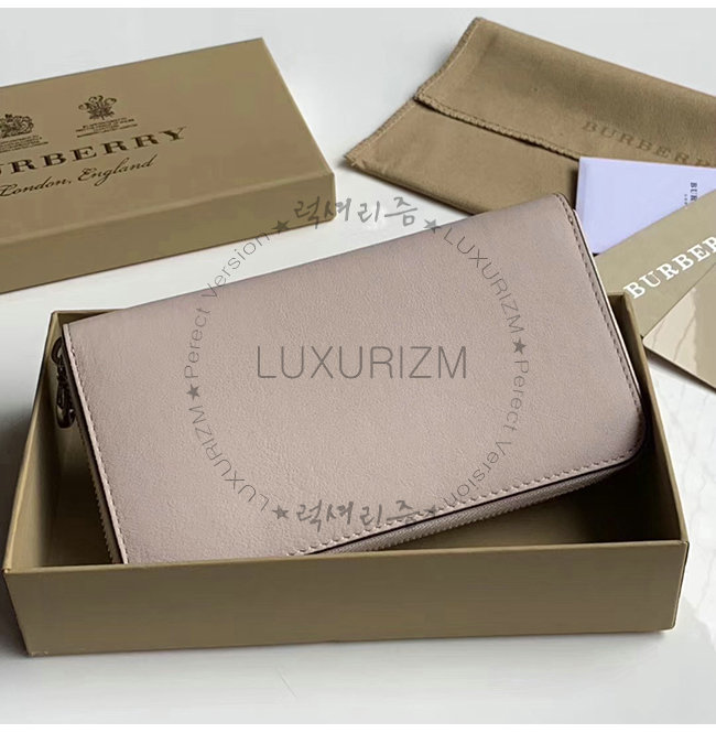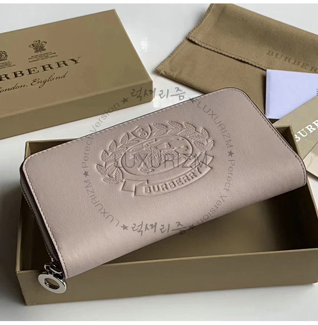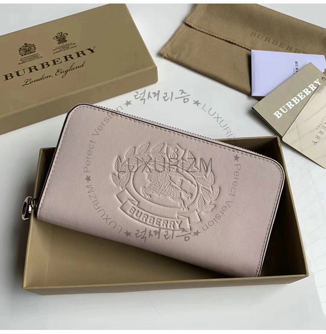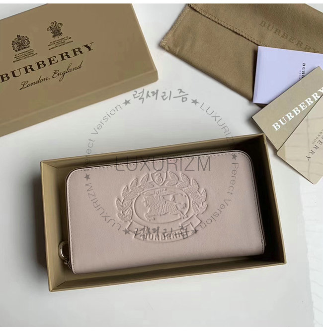 [스페셜오더]BURBERRY-40779851 버버리 초크 핑크 송아지 가죽 엠보싱 크레스트 투톤 지퍼라운드 지갑