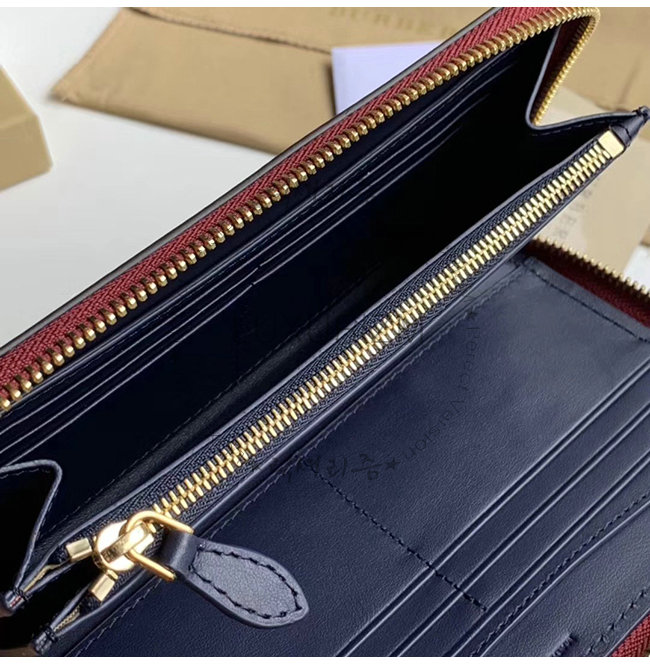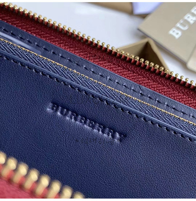 [스페셜오더]BURBERRY-40779851 버버리 네이비 송아지 가죽 엠보싱 크레스트 투톤 지퍼라운드 지갑 가격 : 210,000원