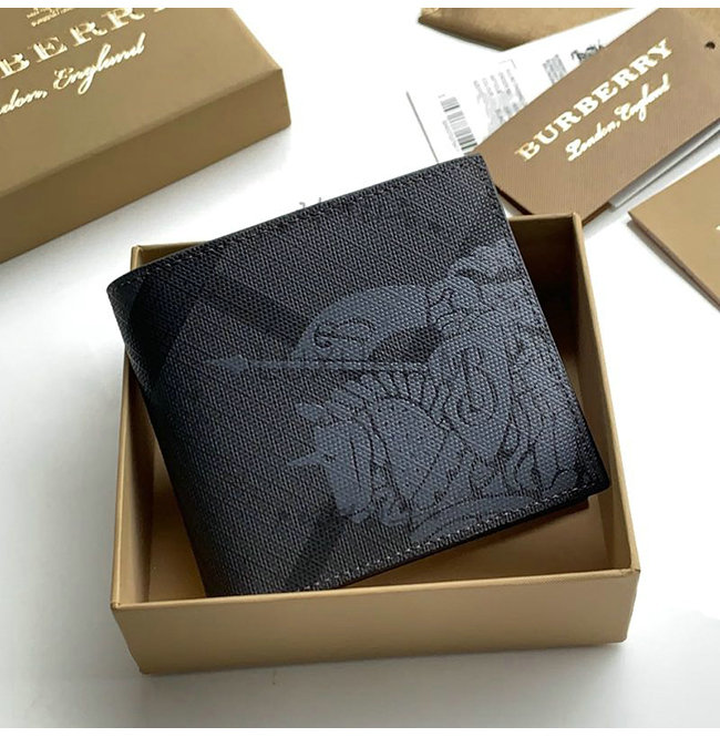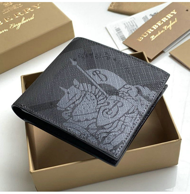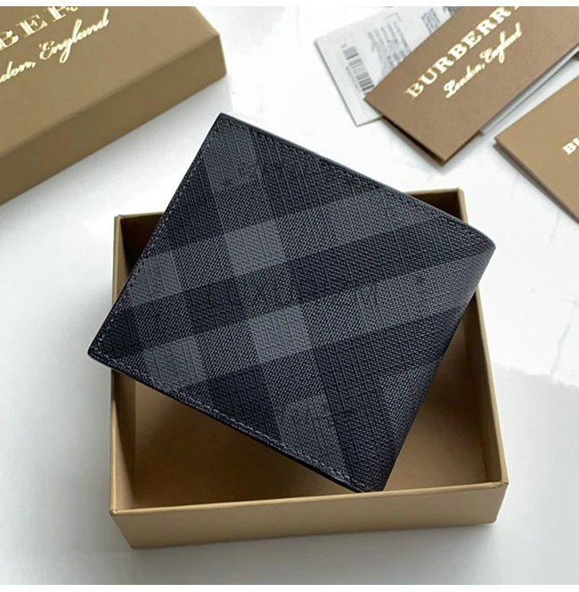런던 체크 패턴의 바이폴드 지갑. 버버리 기마상 로고가