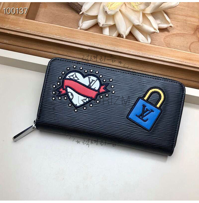[스페셜오더]LOUIS VUITTON-M63377 루이비통 핑크 에삐 레더 패치 디테일 지피 월릿