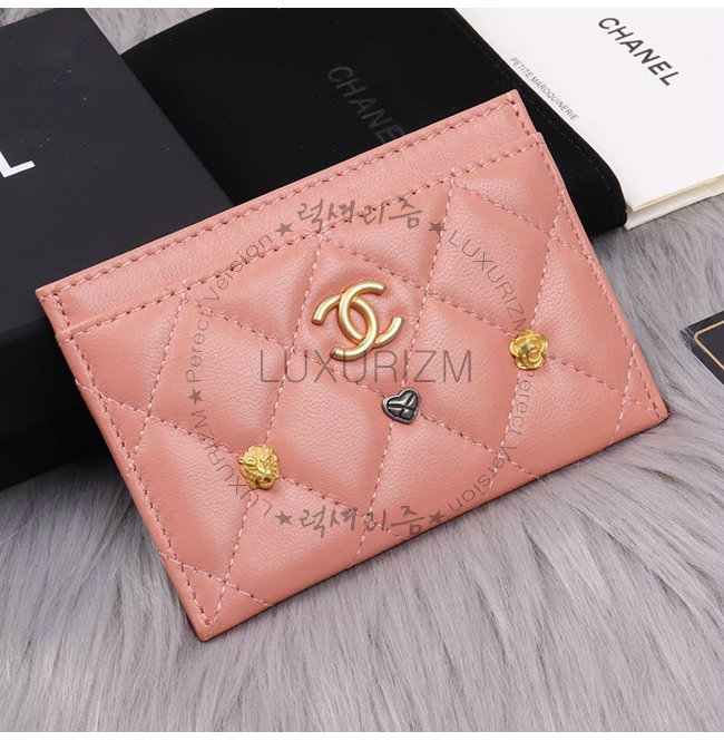 [스페셜오더]CHANEL-A81609 샤넬 누드 램스킨 스터드 장식 골드메탈 카드 홀더