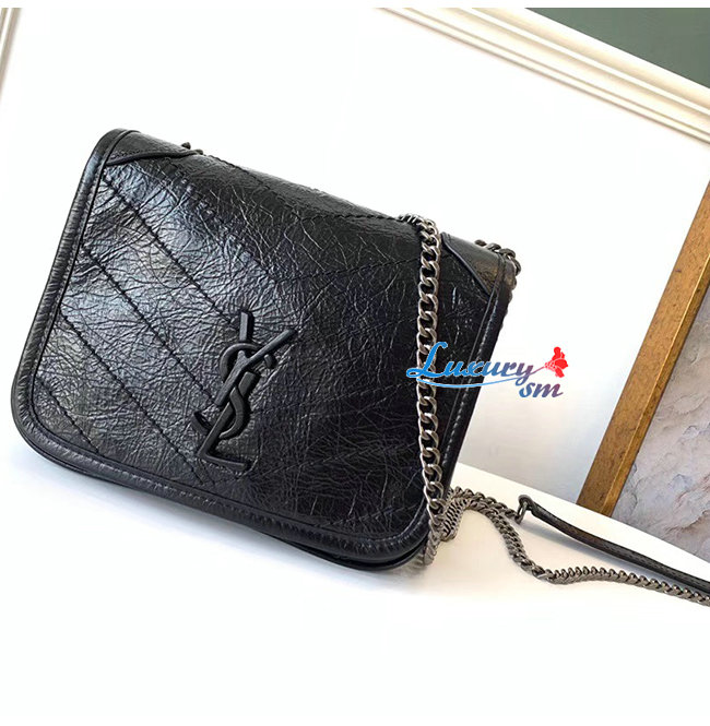 [스페셜오더]SAINT LAURENT-583103 생 로랑 블랙 빈티지 송아지 가죽 니키 체인 월릿